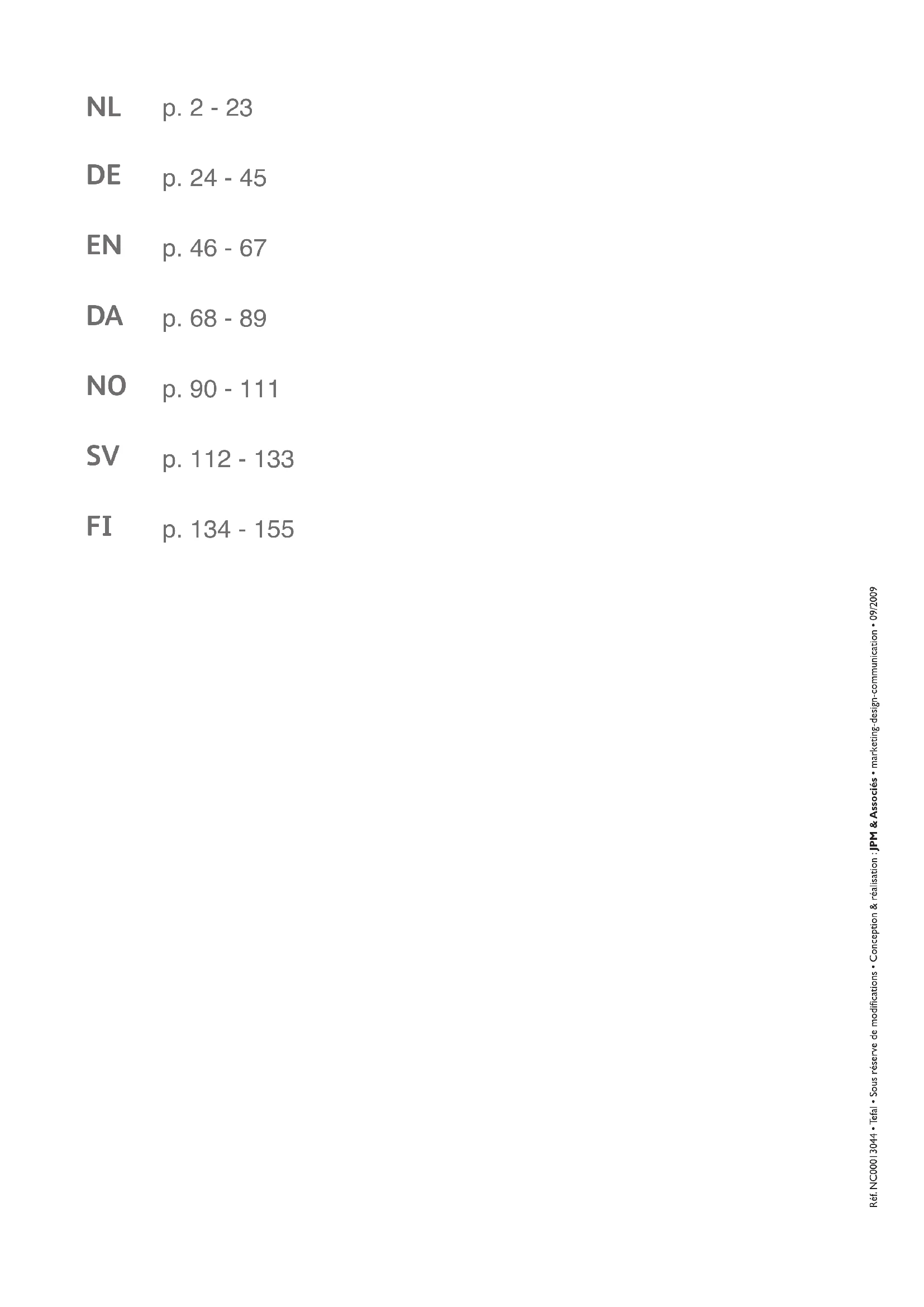 Réf. NC00013044 • Tefal • Sous réserve de modifications • Conception & réalisation : JPM & Associés • marketing-design-communication • 09/2009