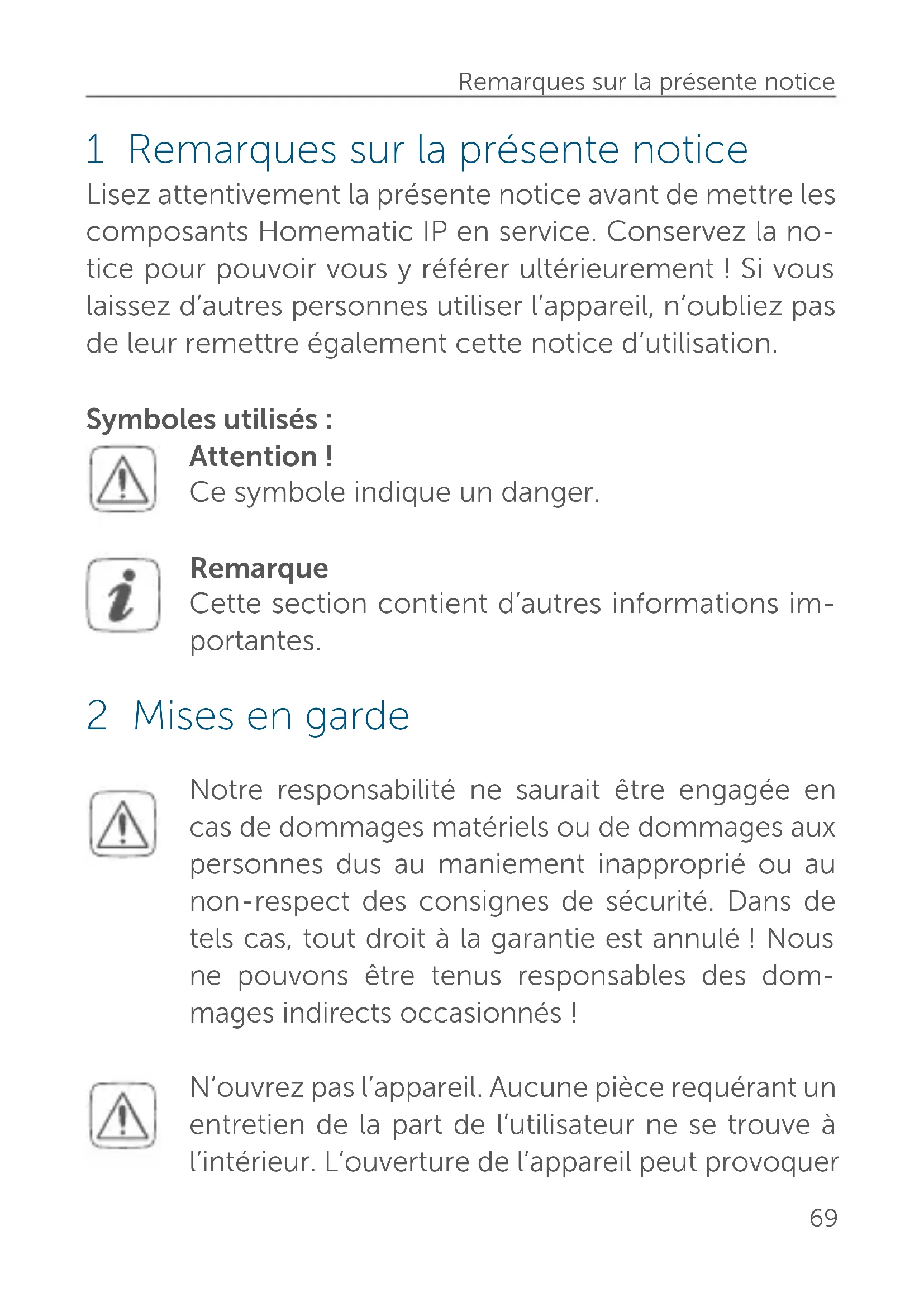 - 2 Mises en garde p. 69