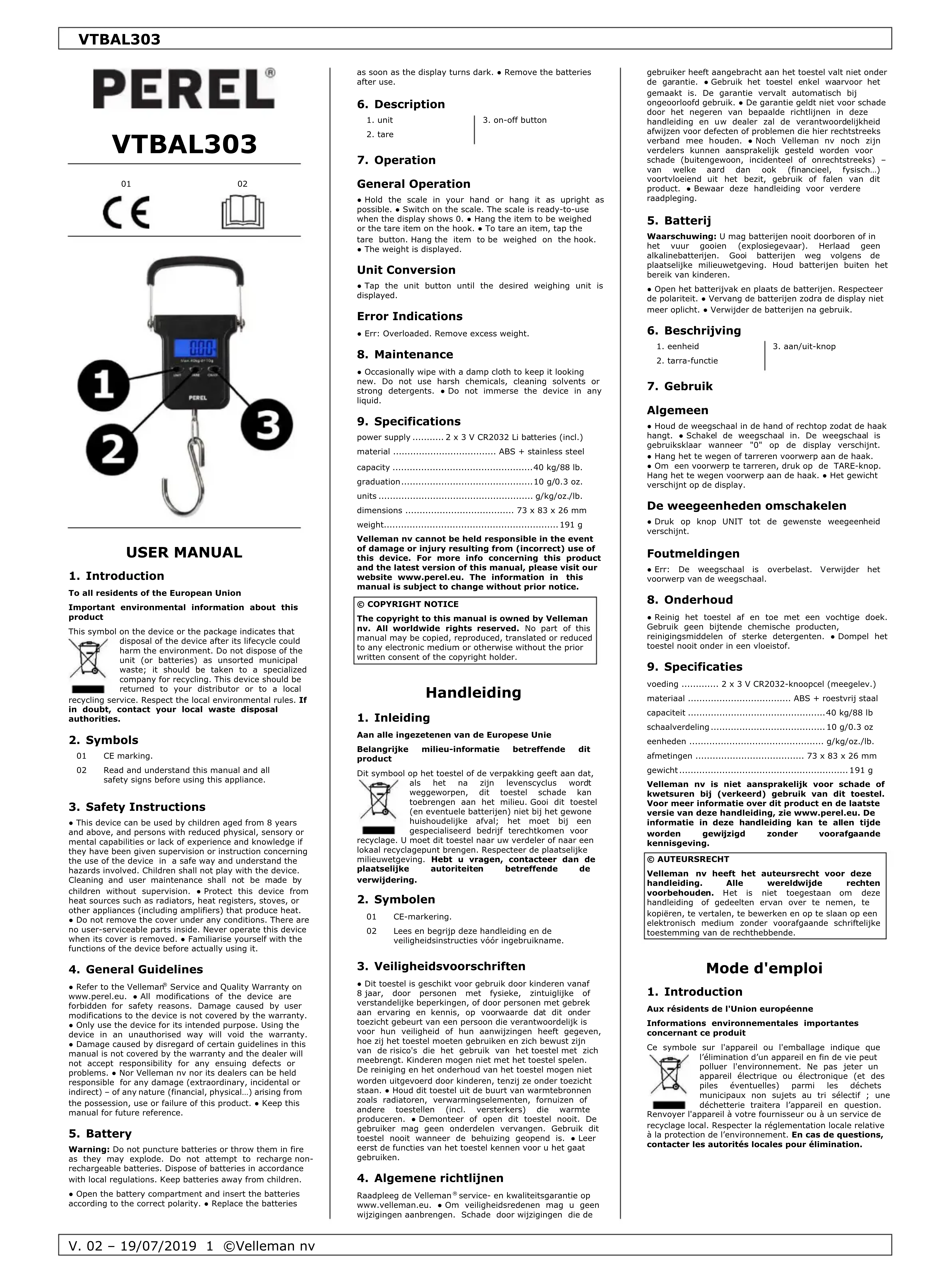 VTBAL303 - Balance Perel - Notice d'utilisation et mode d'emploi gratuit