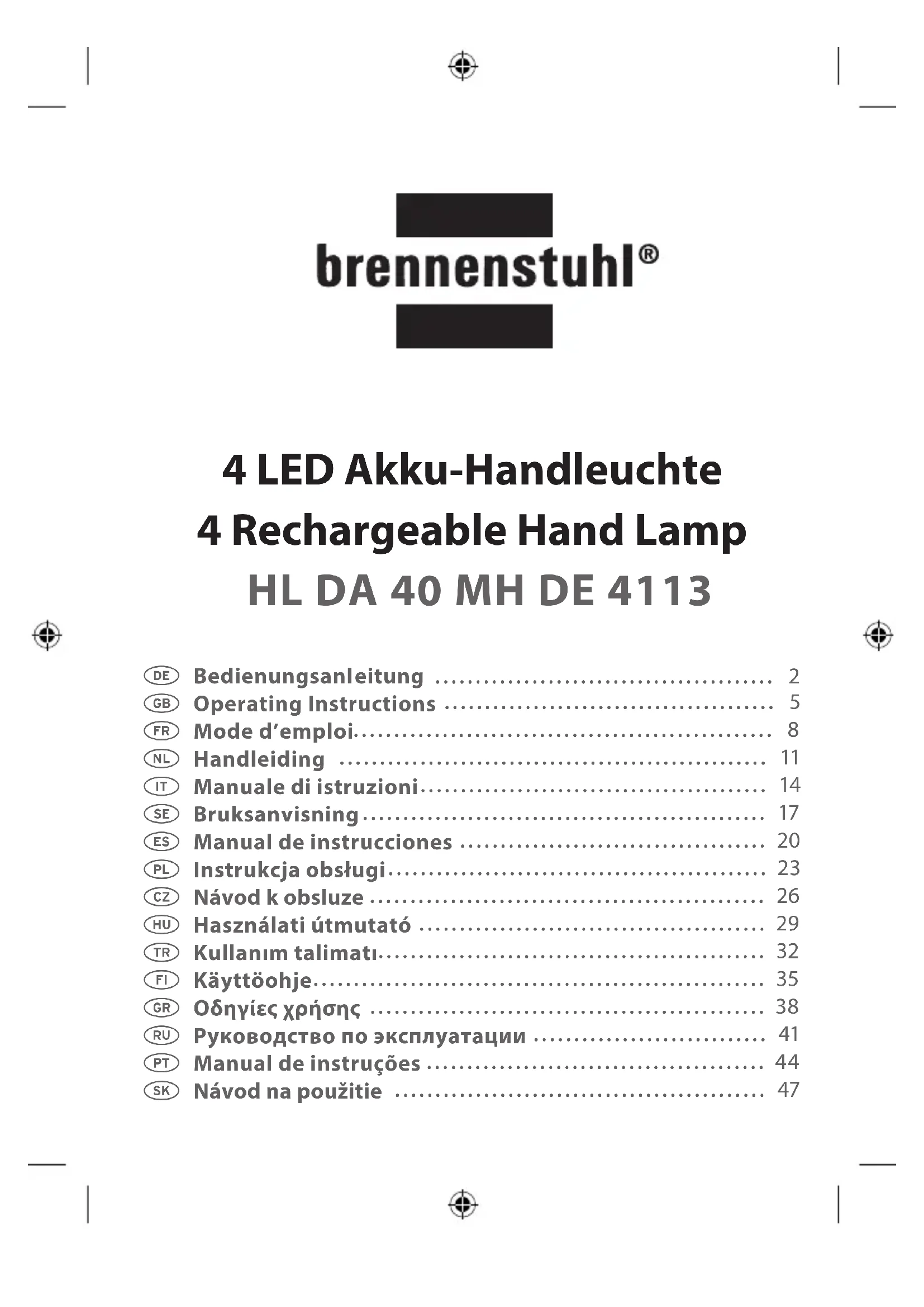 Retrouvez gratuitement la notice de l'appareil HL DA 40 MH DE 4113 BRENNENSTUHL au format PDF.