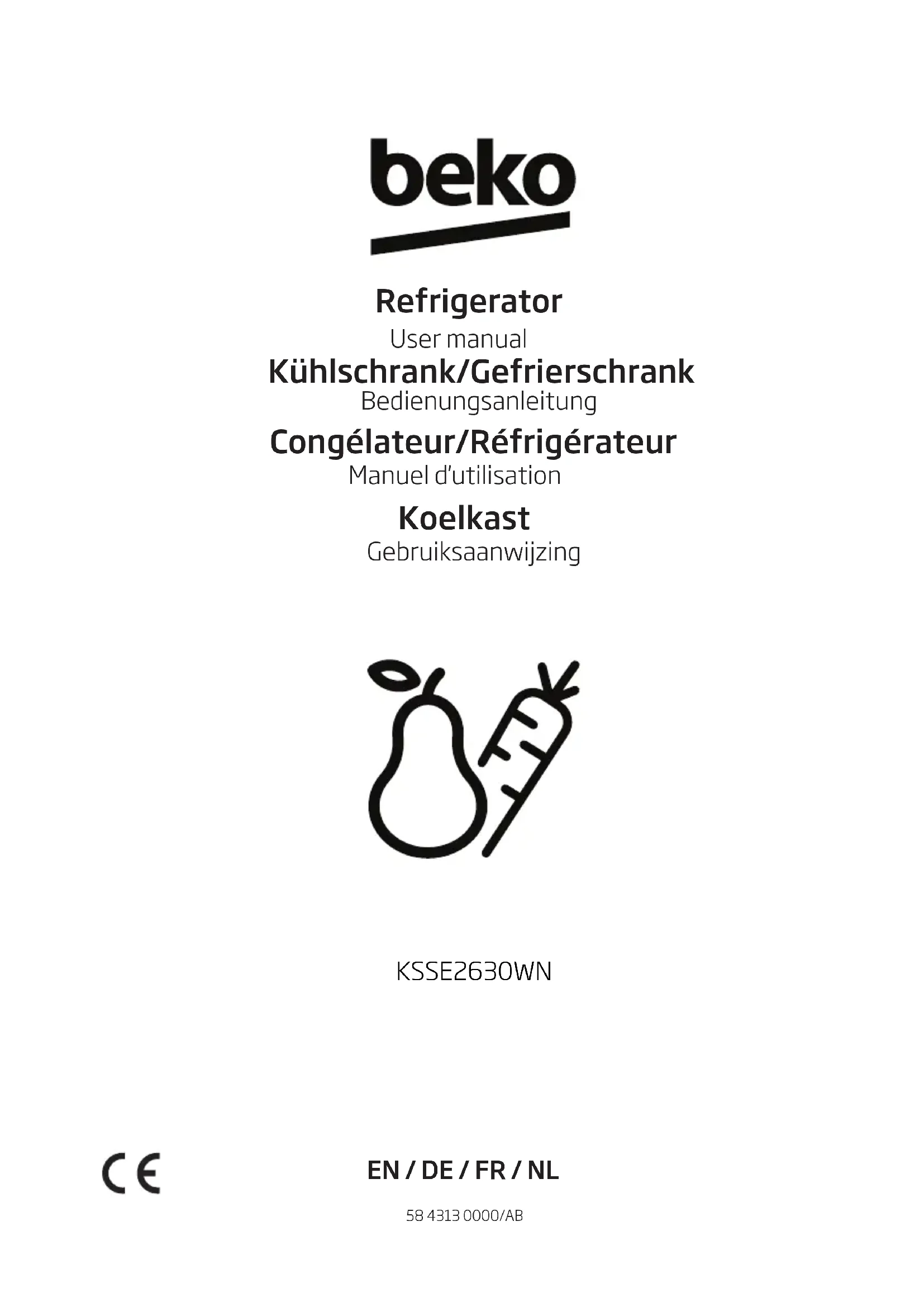 KSSE2630WN - Réfrigérateur BEKO - Notice d'utilisation et mode d'emploi gratuit