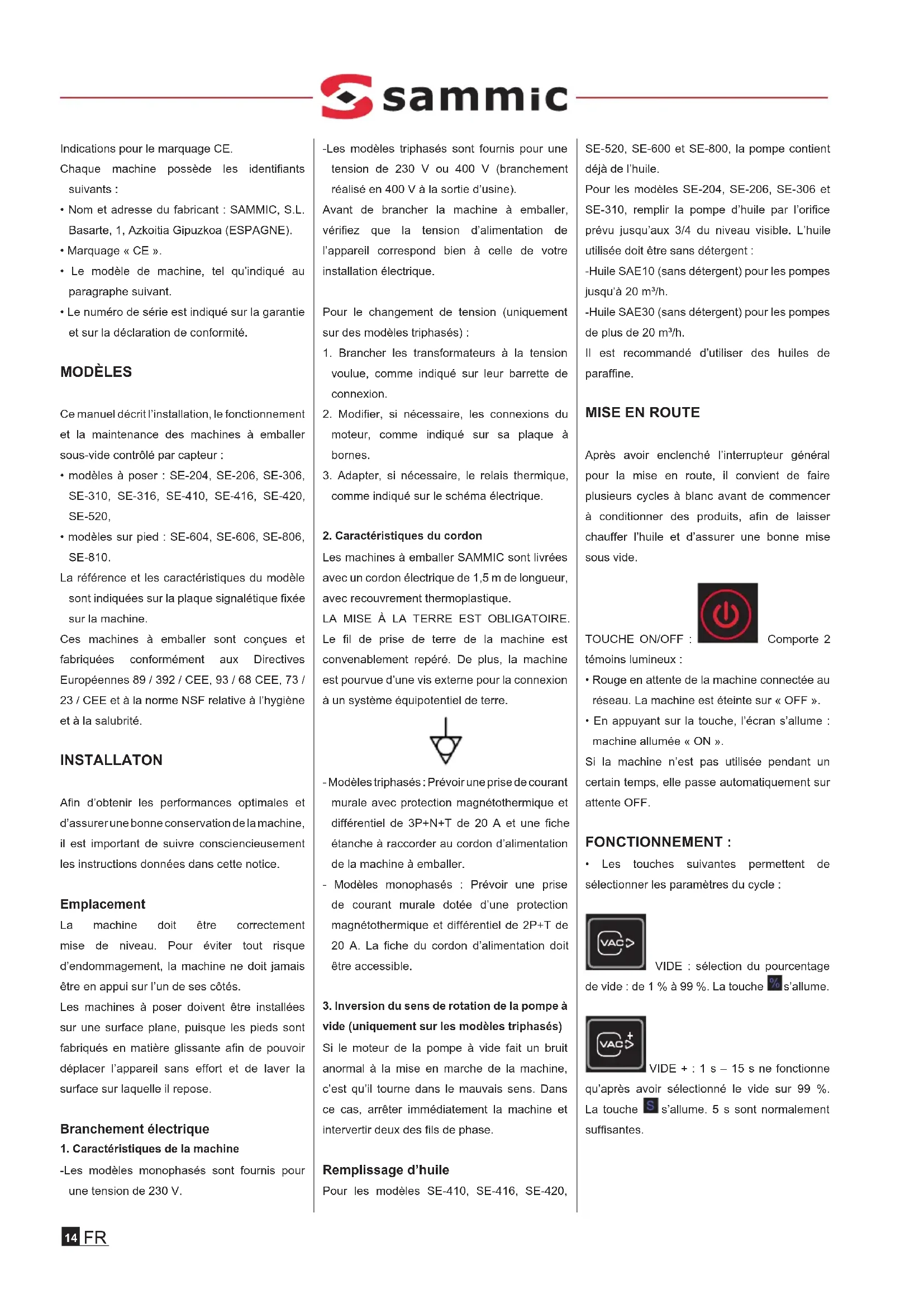 SE316 - Appareils à emballage sous vide Sammic - Notice d'utilisation et mode d'emploi gratuit