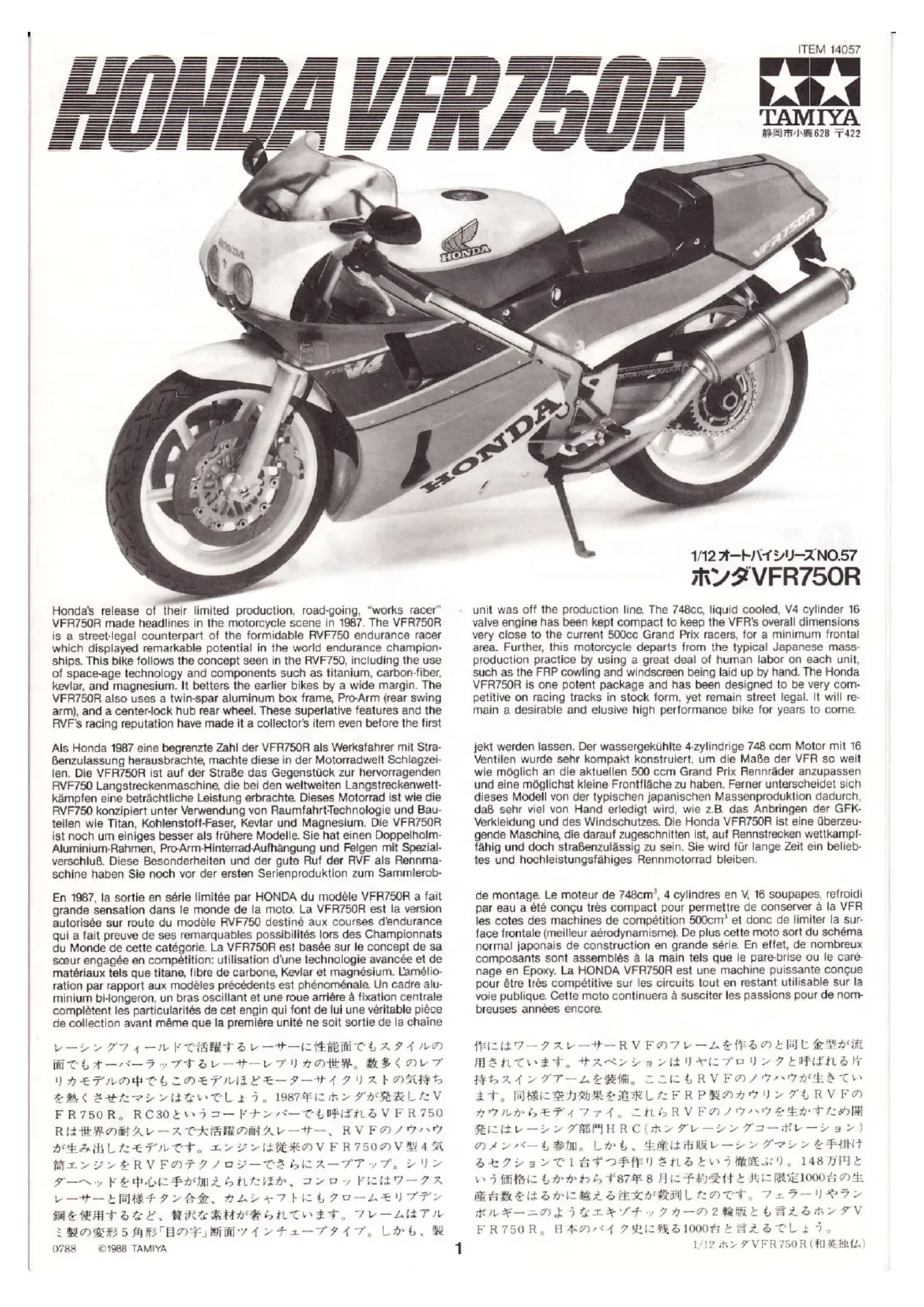 VFR750R - Jouets TAMIYA - Notice d'utilisation et mode d'emploi gratuit
