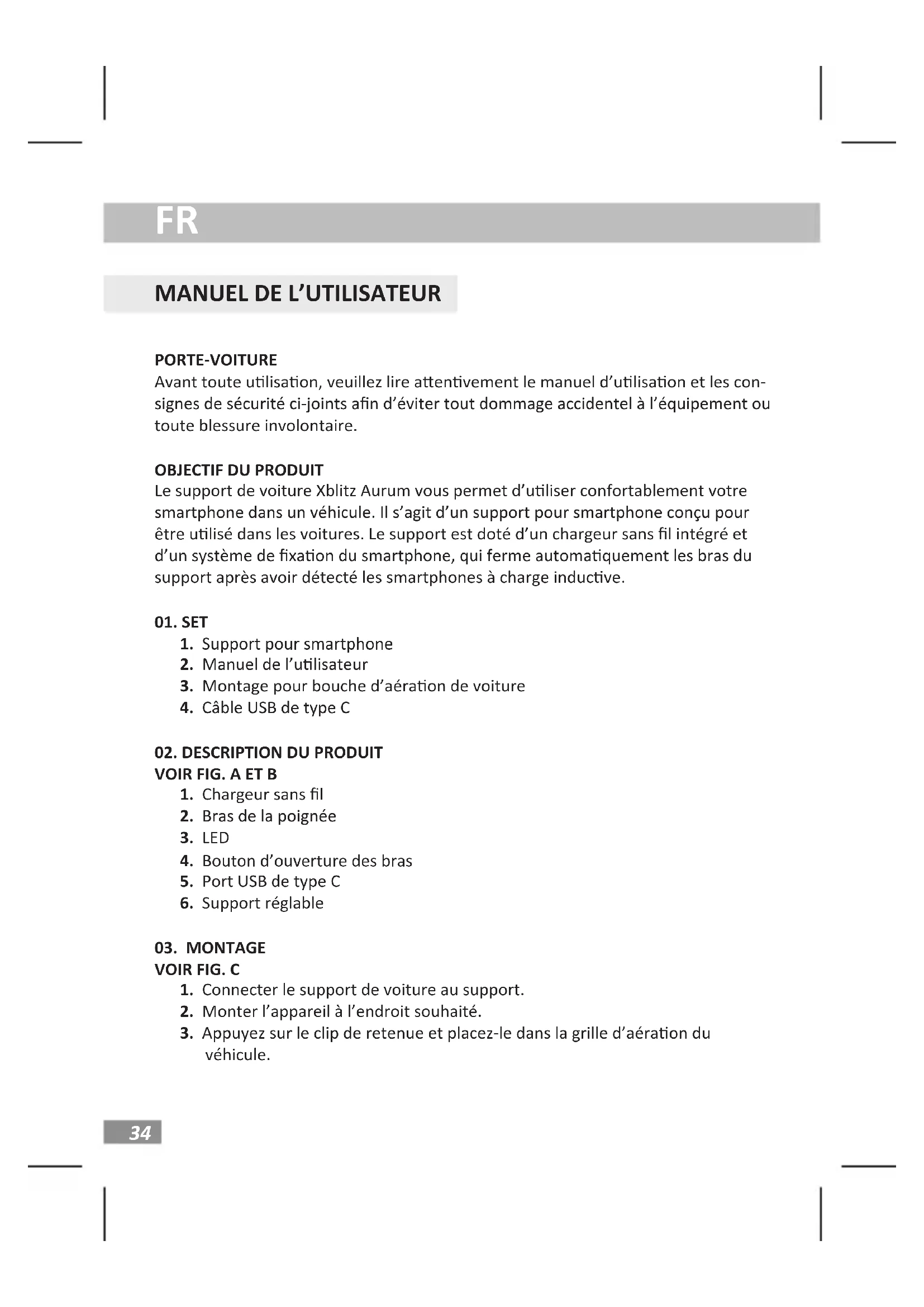 Le support de voiture Xblitz Aurum vous permet d’uliser confortablement votre smartphone dans un véhicule. Il s’agit d’un support pour smartphone conçu pour être ulisé dans les voitures. Le support est doté d’un chargeur sans l intégré et d’un système de xaon du smartphone, qui ferme automaquement les bras du support après avoir détecté les smartphones à charge inducve.