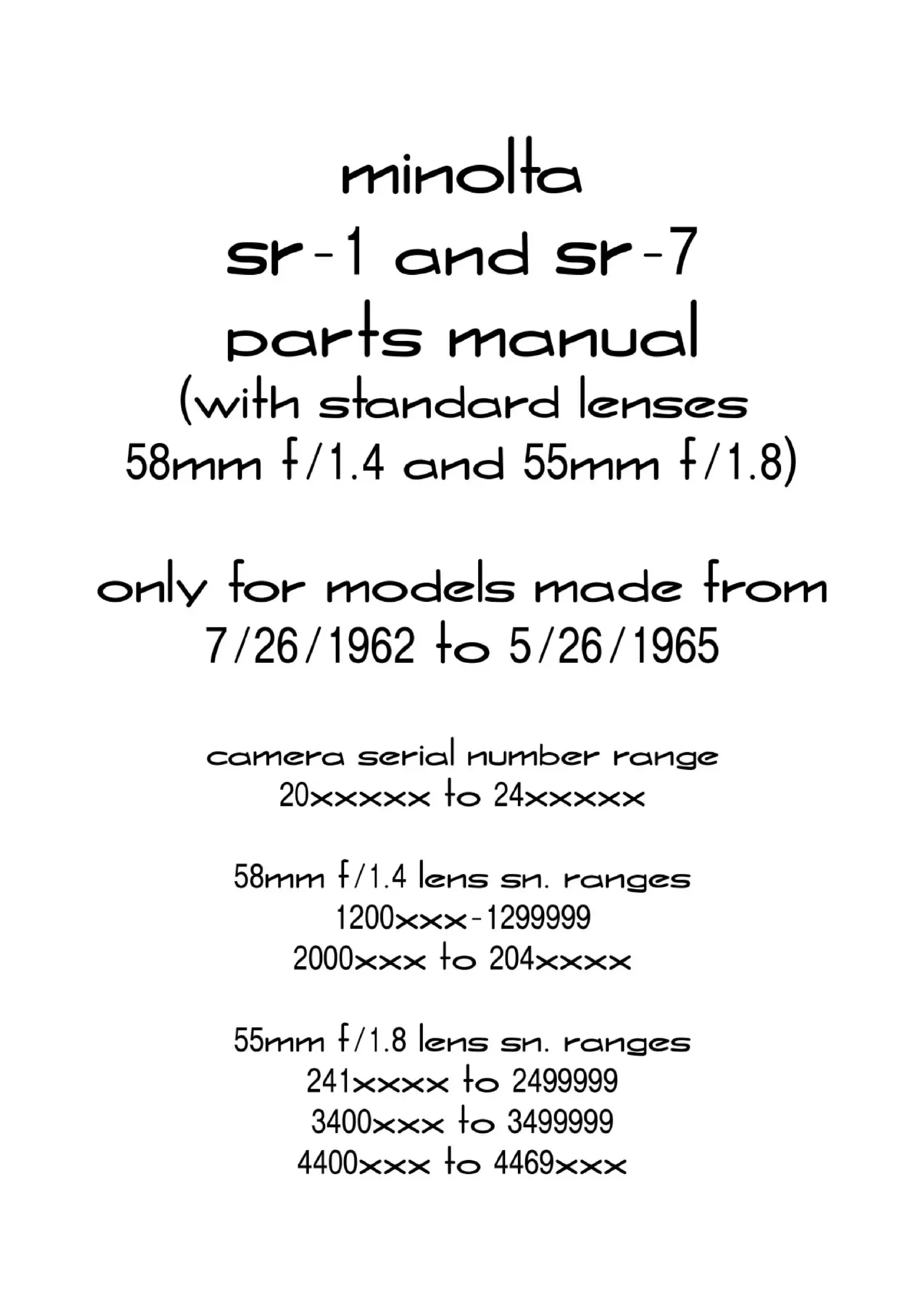 Retrouvez gratuitement la notice de l'appareil SR1 KONICA MINOLTA au format PDF.