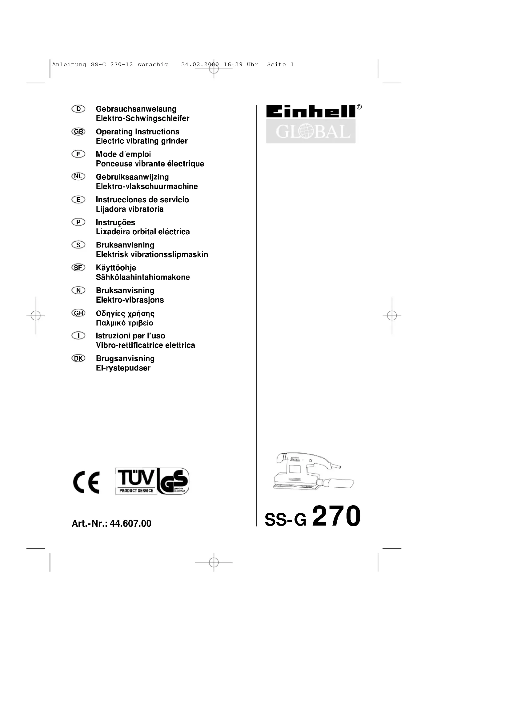 SSG 270 - Ponceuse Global - Notice d'utilisation et mode d'emploi gratuit