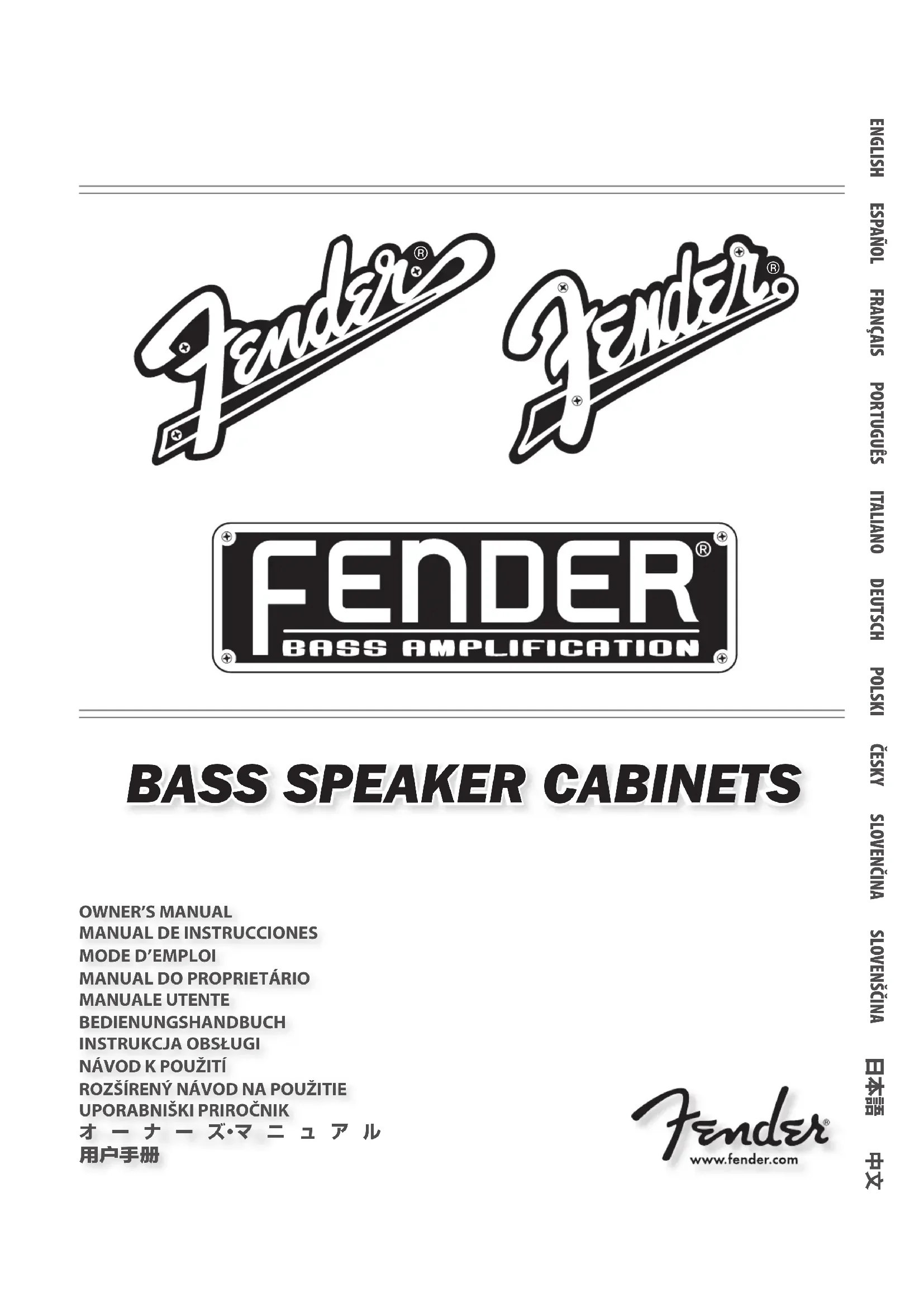 Vous pouvez connecter plusieurs enceintes basse Fender à une sortie de l'amplificateur comme indiqué (voir le Guide d'impédance ci-dessus). Utilisez n'importe quelle embase {A} comme entrée et n'importe quelle autre comme sortie vers l'enceinte suivante. TWEETER À COMPRESSION Réglez le niveau du Tweeter à compression avec le bouton/interrupteur Horn Level {B}. En utilisation normale, réglez au centre (–6 dB). Notez que la distorsion générée par l'amplificateur est mise en évidence par la réponse haute fréquence du Tweeter. ENCEINTES DE LA SÉRIE NEO/PRO : Le Tweeter est protégé contre les surcharges par une lampe à incandescence. Si le Tweeter cesse de fonctionner, remplacez la lampe, comme un fusible. La lampe se situe sous le panneau d'entrée. Pour accéder à la lampe : Retirez les 8 vis du panneau d'entrée puis retirez le panneau. Utilisez un petit tourne vis à tête plate pour retirer la lampe ayant grillé. Une lampe de rechange se trouve à côté de la plaque du circuit (commandez-en une nouvelle P/N 051857). Après avoir inséré la nouvelle lampe, remettez le panneau d'entrée en place. Mise en œuvre et utilisation Depuis l'ampli Depuis l'ampli Vers l'enceinte7 PORTUGUÊS Alto-falantes FBA Seu novo alto-falante para baixo fornece som Fender de classe mundial e qualidade Fender de padrão mundial. Obrigado por escolher Fender®—Tom, Tradição e Inovação – desde 1946!