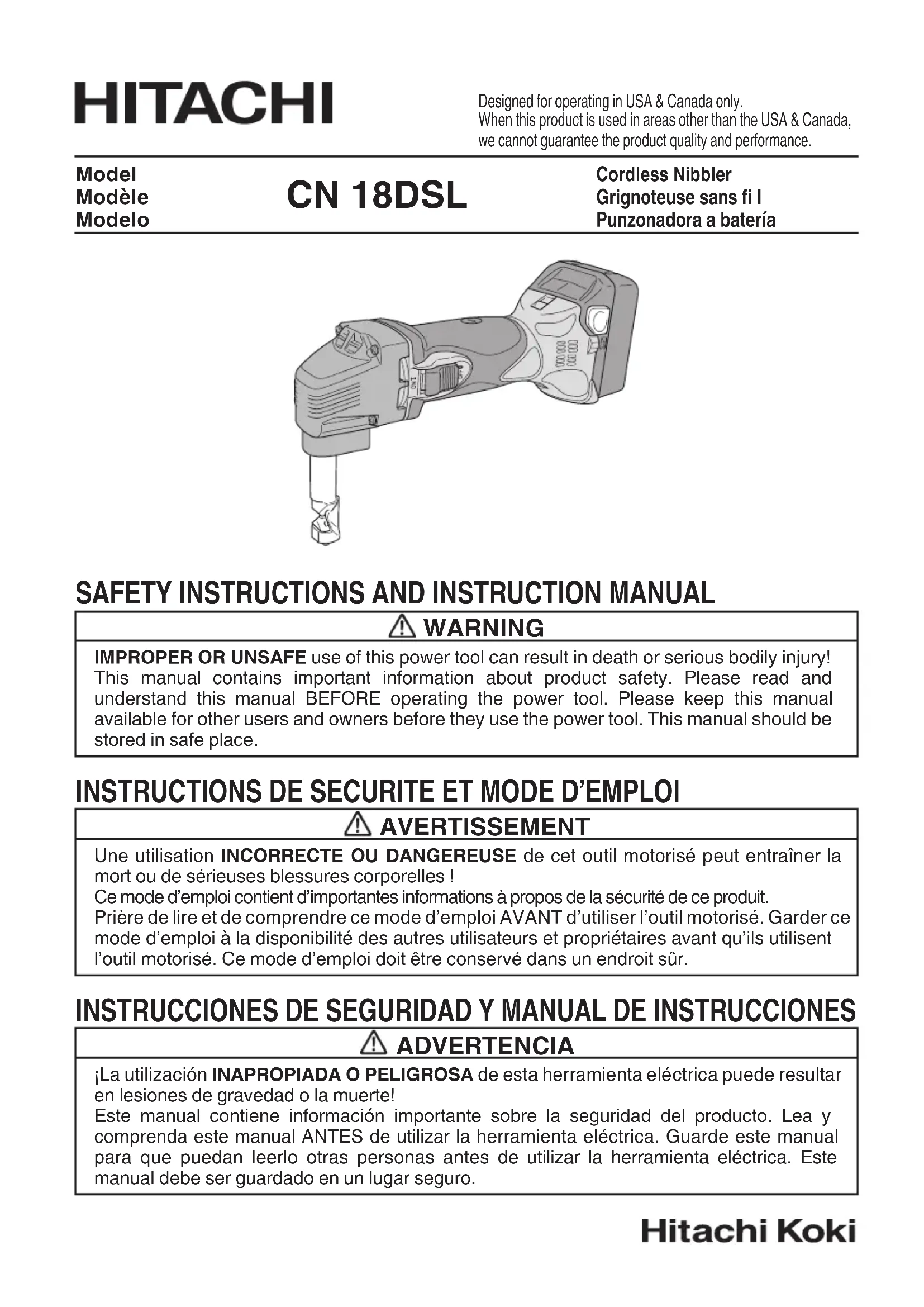MODE D'EMPLOI CN 18DSL HITACHI