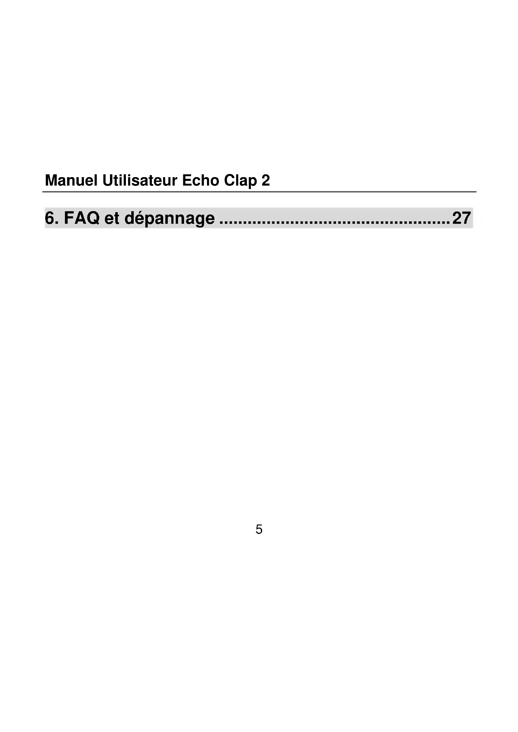 6. FAQ et dépannage ................................................. 27Manuel Utilisateur Echo Clap 2