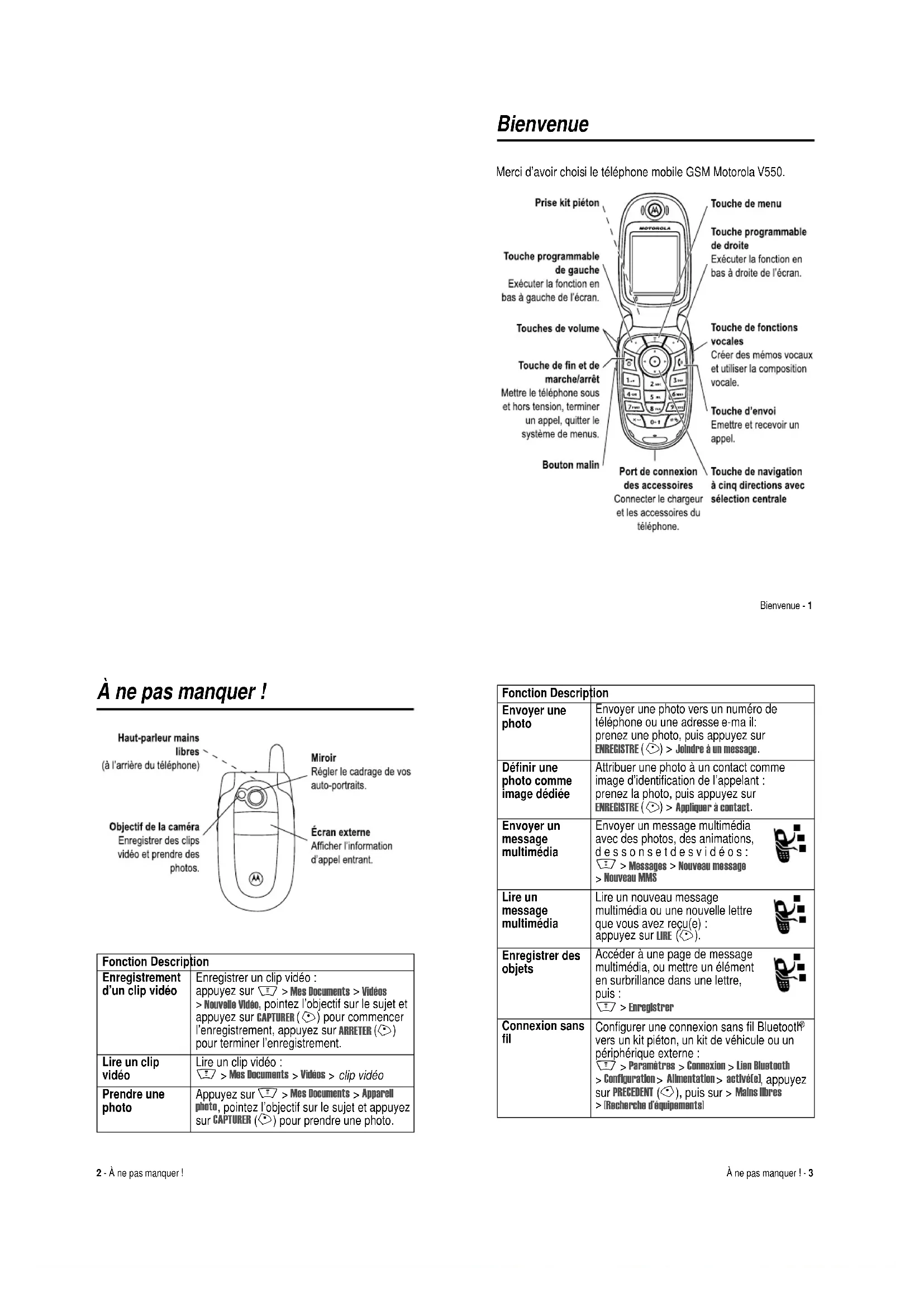 Bienvenue - 1 Bienvenue Merci d’avoir choisi le téléphone mobile GSM Motorola V550.