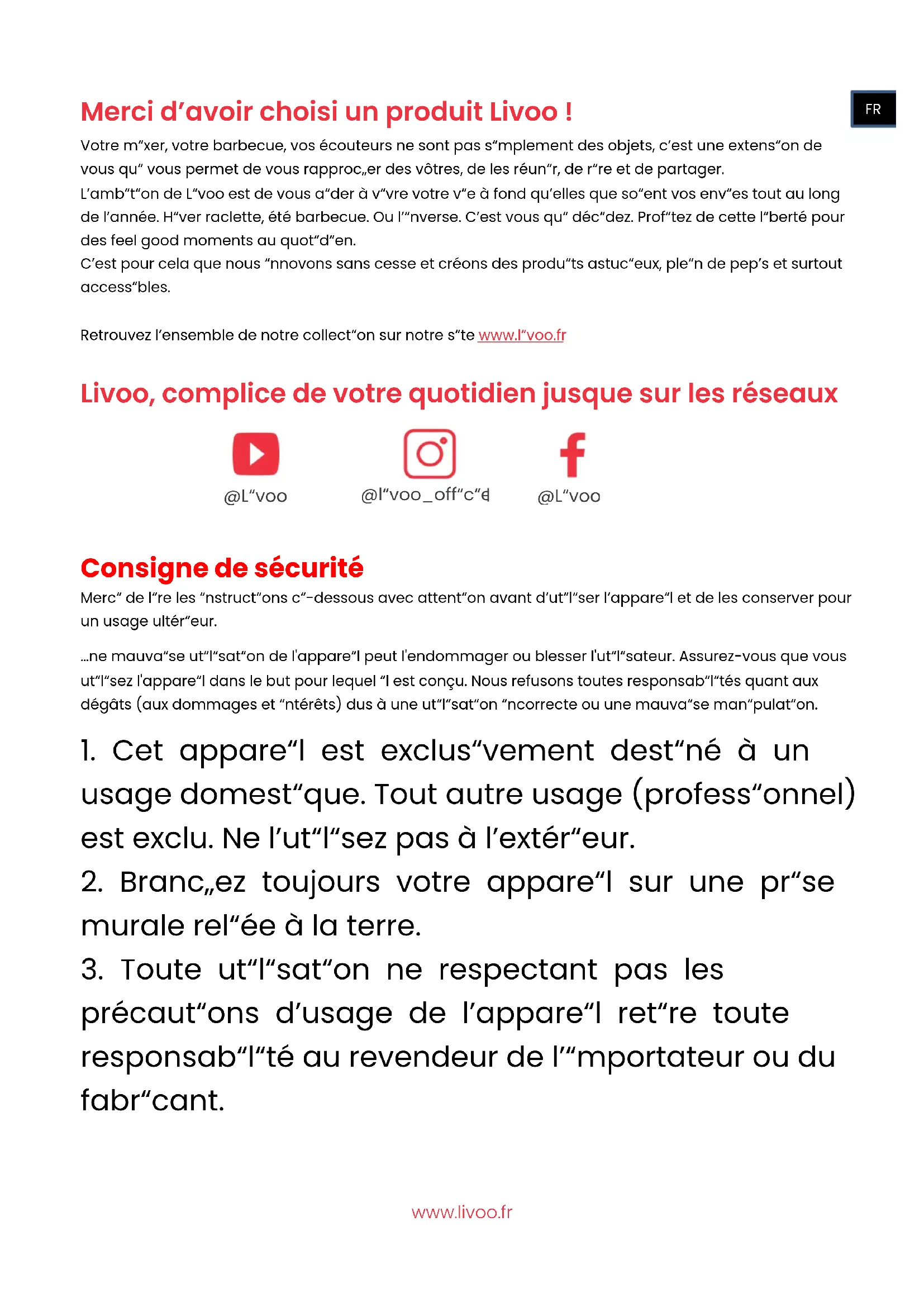 précautions d’usage de l’appareil retire toute responsabilité au revendeur de l’importateur ou du fabricant. @livoo_officiel