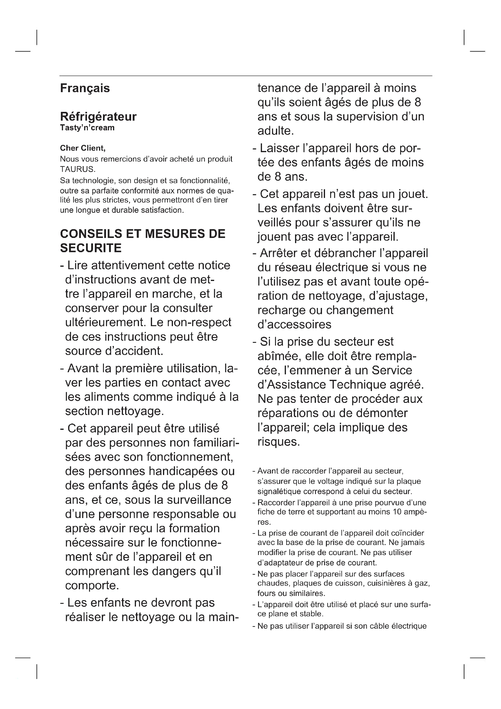 Retrouvez gratuitement la notice de l'appareil Tasty'N'Cream TAURUS au format PDF.