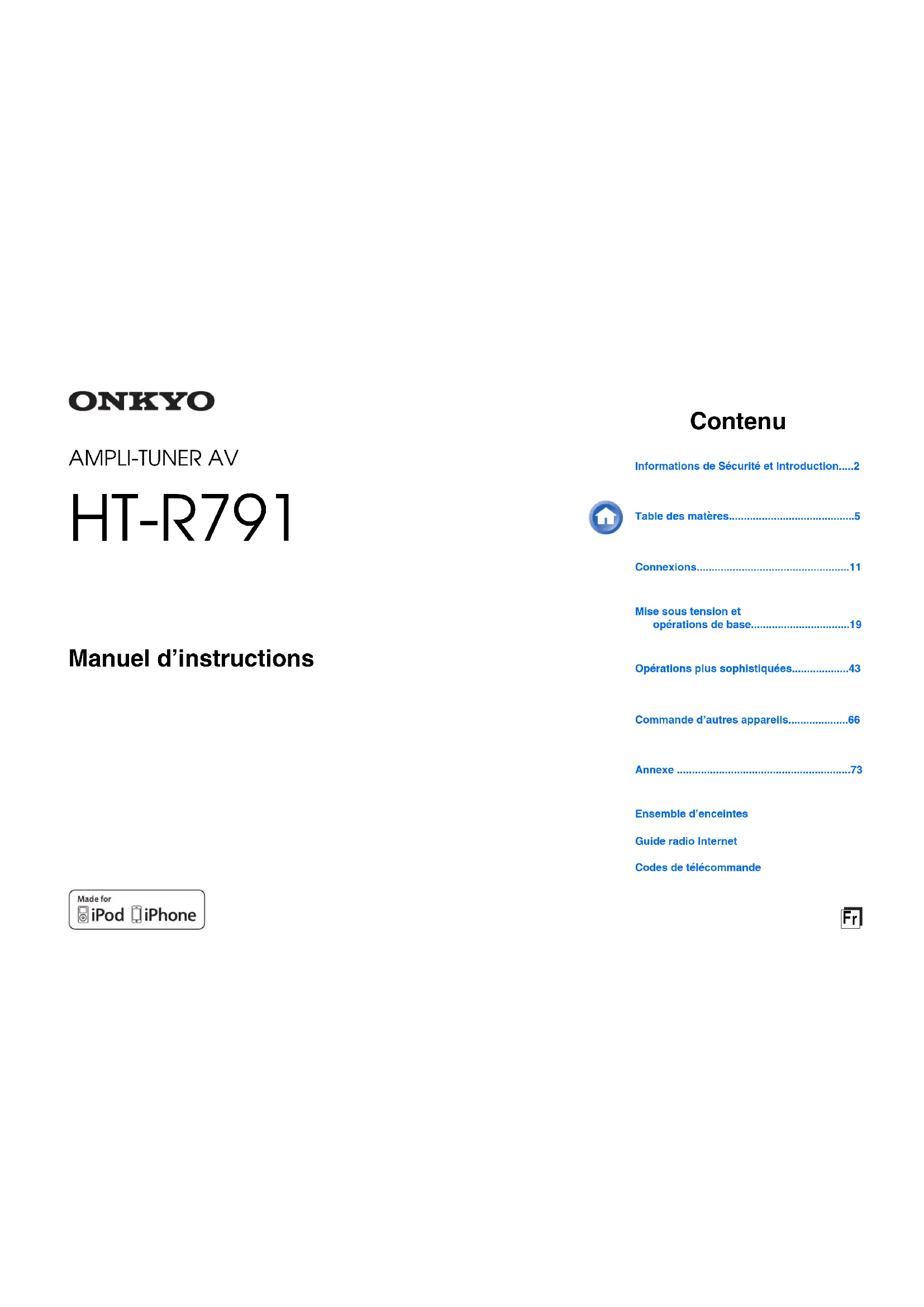 - AMPLI-TUNER AV HT-R791 Manuel d’instructions Contenu Informations de Sécurité et Introduction p. 2