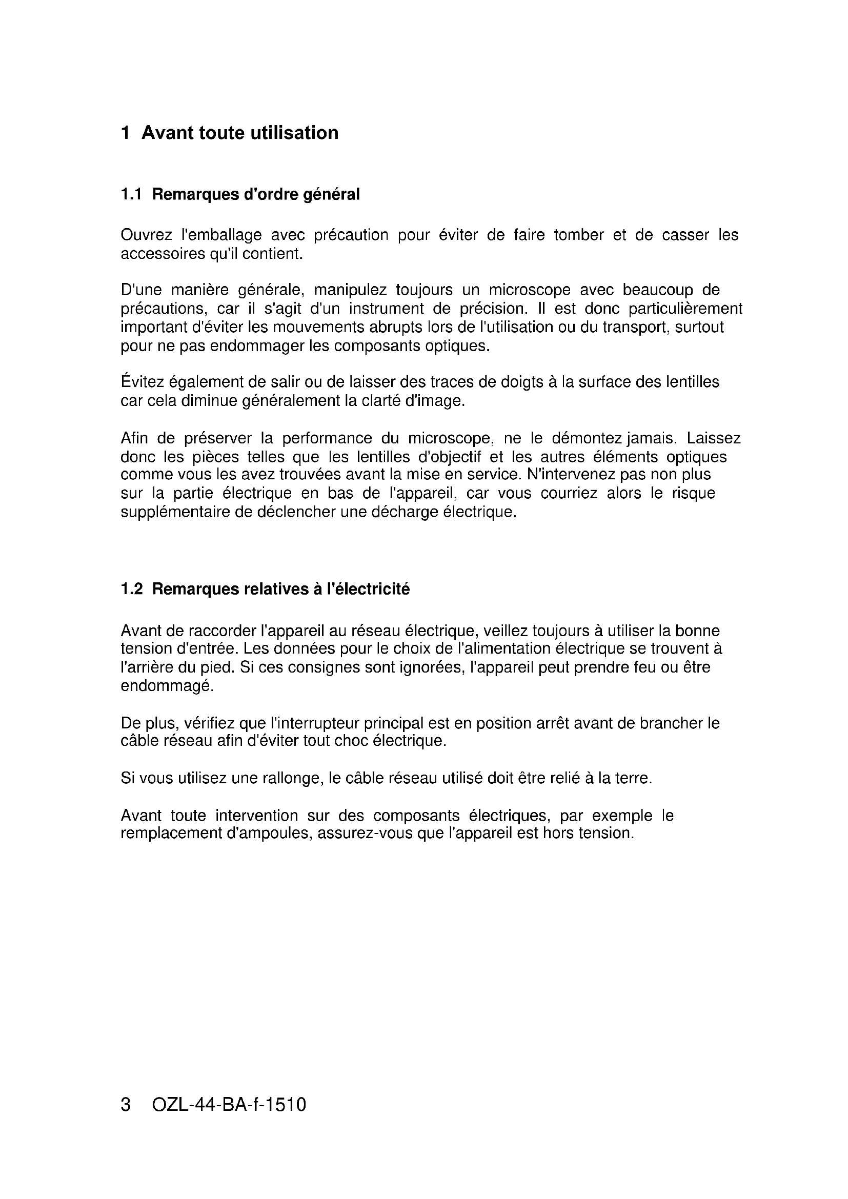 D'une manière générale, manipulez toujours un microscope avec beaucoup de précautions, car il s'agit d'un instrument de précision. Il est donc particulièrement important d'éviter les mouvements abrupts lors de l'utilisation ou du transport, rundout pour ne pas endommager les composants optiques.