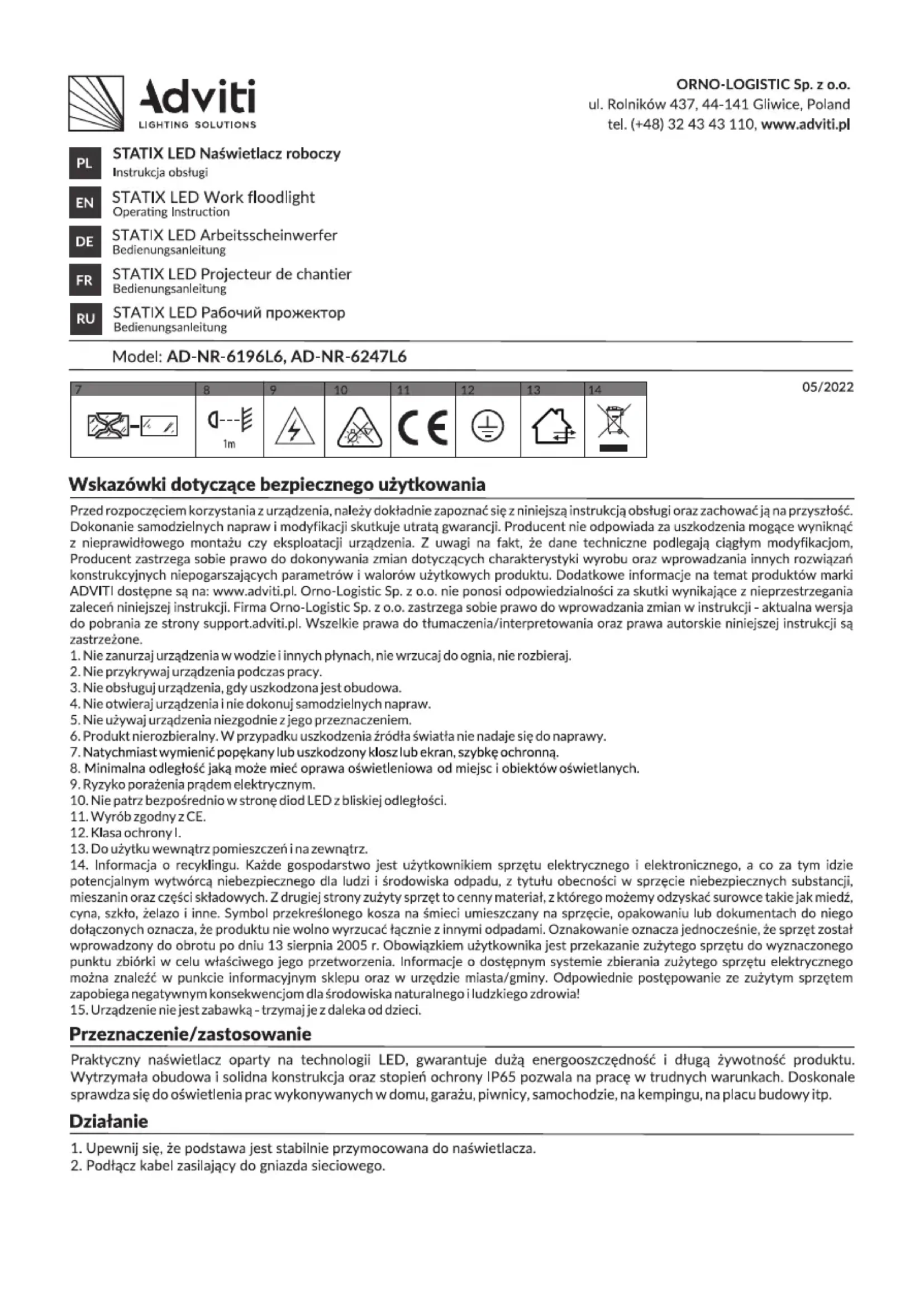 ADNR6196L6 - Lampe Adviti - Notice d'utilisation et mode d'emploi gratuit