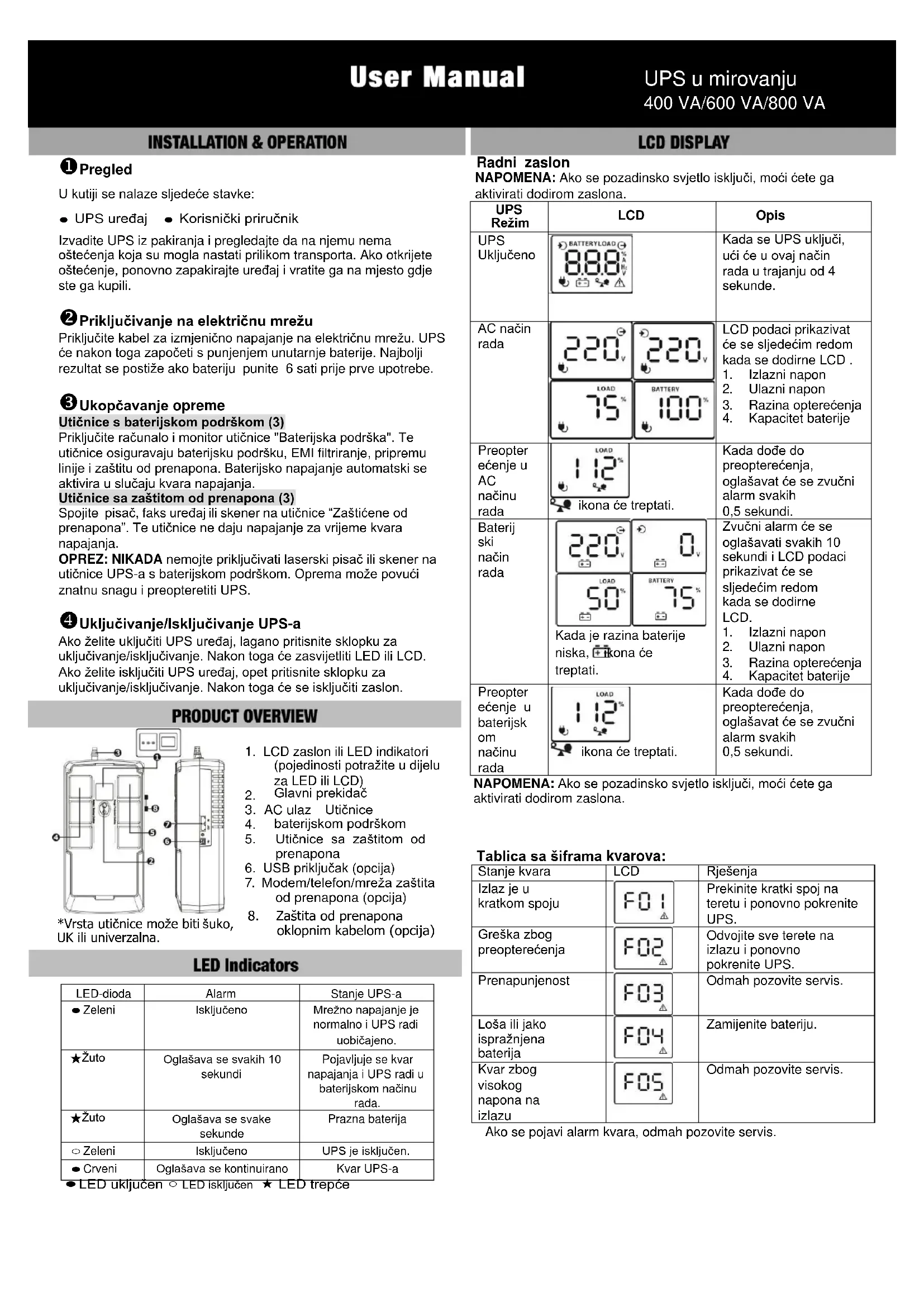 LED éteinte LED clignotanteOnduleur de secours 400 VA/600 VA/800 VA