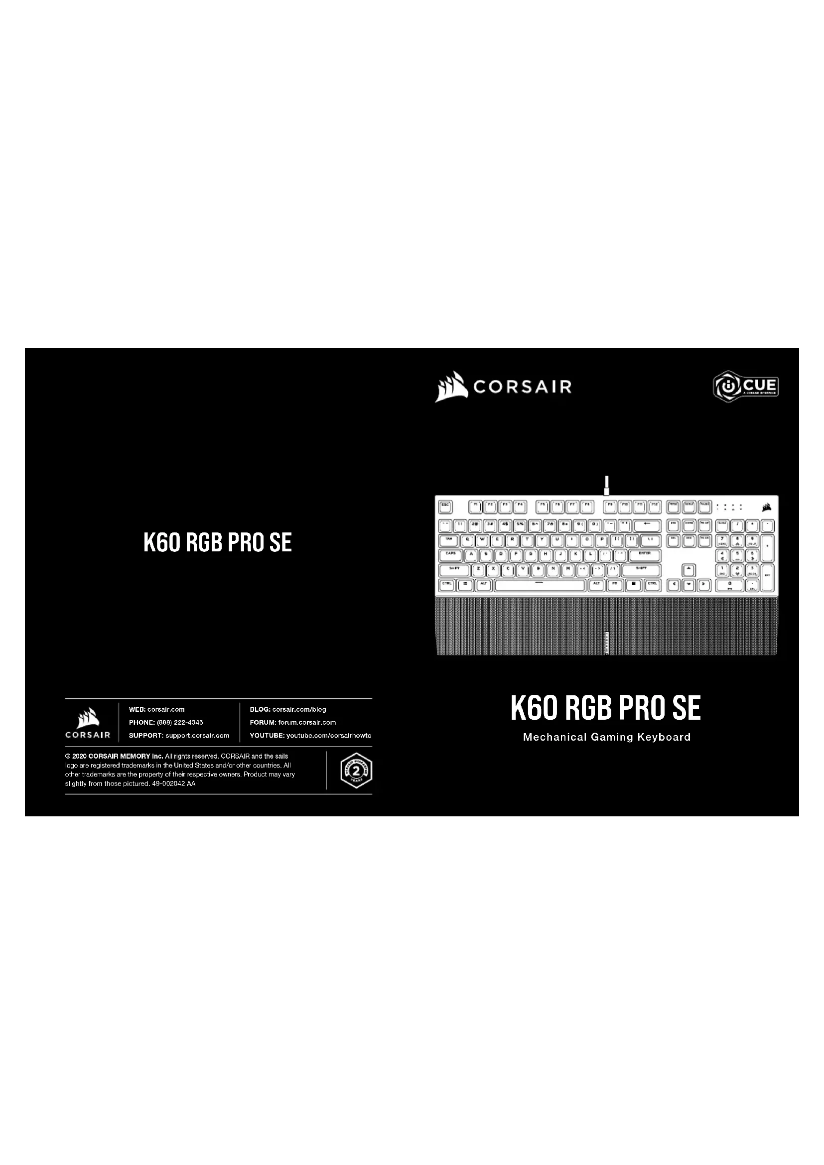 Retrouvez gratuitement la notice de l'appareil K60 RGB PRO SE CORSAIR au format PDF.