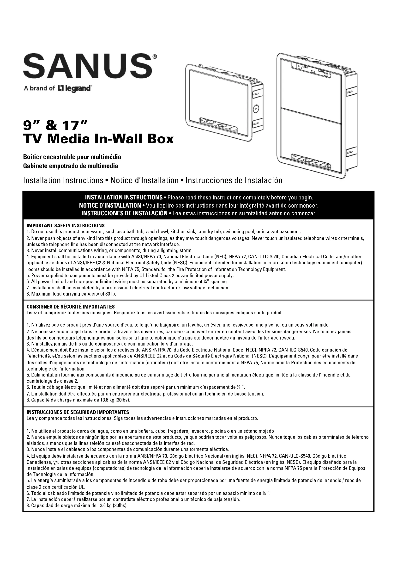 SAIWB9 - Non catégorisé SANUS - Notice d'utilisation et mode d'emploi gratuit