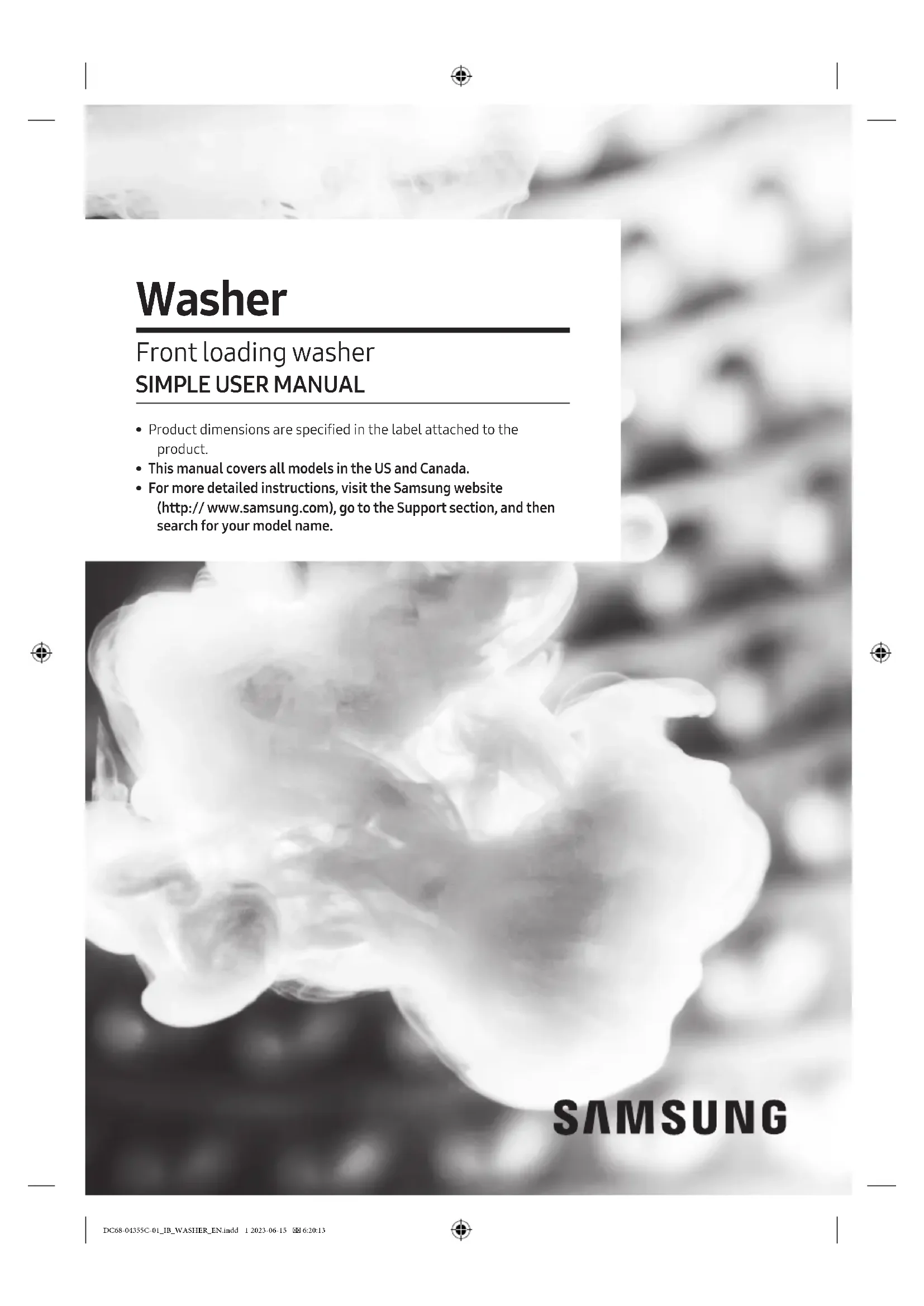 Visits by a Service Engineer to explain functions, maintenance, or installation are not covered by warranty. Please contact your Samsung call agent for help with any of these issues. DC68-04355C-01_IB_WASHER_EN.indd 26 2023-06-15 6:20:15Memo DC68-04355C-01_IB_WASHER_EN.indd 27 2023-06-15 6:20:15Scan this with your smartphone QUESTIONS OR COMMENTS? COUNTRY CALL OR VISIT US ONLINE AT U.S.A 1-800-SAMSUNG (726-7864) www.samsung.com/us/support CANADA 1-800-SAMSUNG(726-7864) www.samsung.com/ca/support (English) www.samsung.com/ca_fr/support (French) DC68-04355C-01 DC68-04355C-01_IB_WASHER_EN.indd 28 2023-06-15 6:20:15Lave-linge Lave-linge à chargement frontal Manuel d'utilisation simple