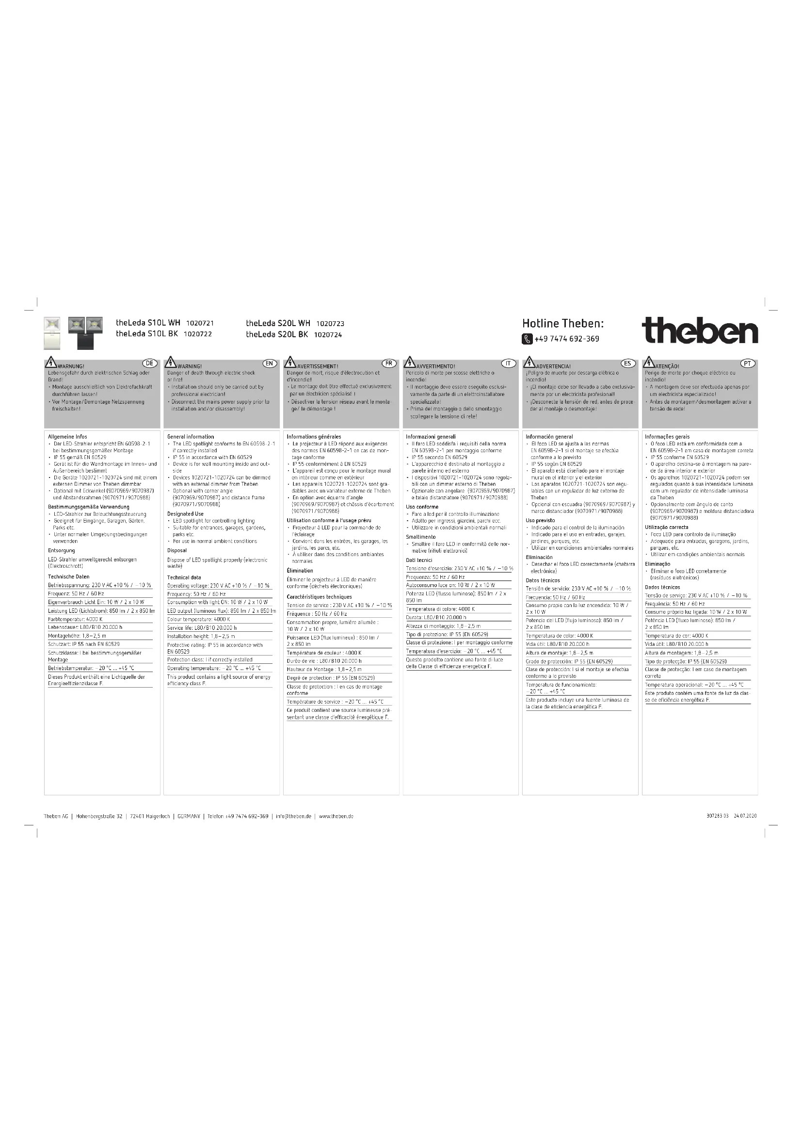 theLeda S20L - Éclairage THEBEN - Notice d'utilisation et mode d'emploi gratuit