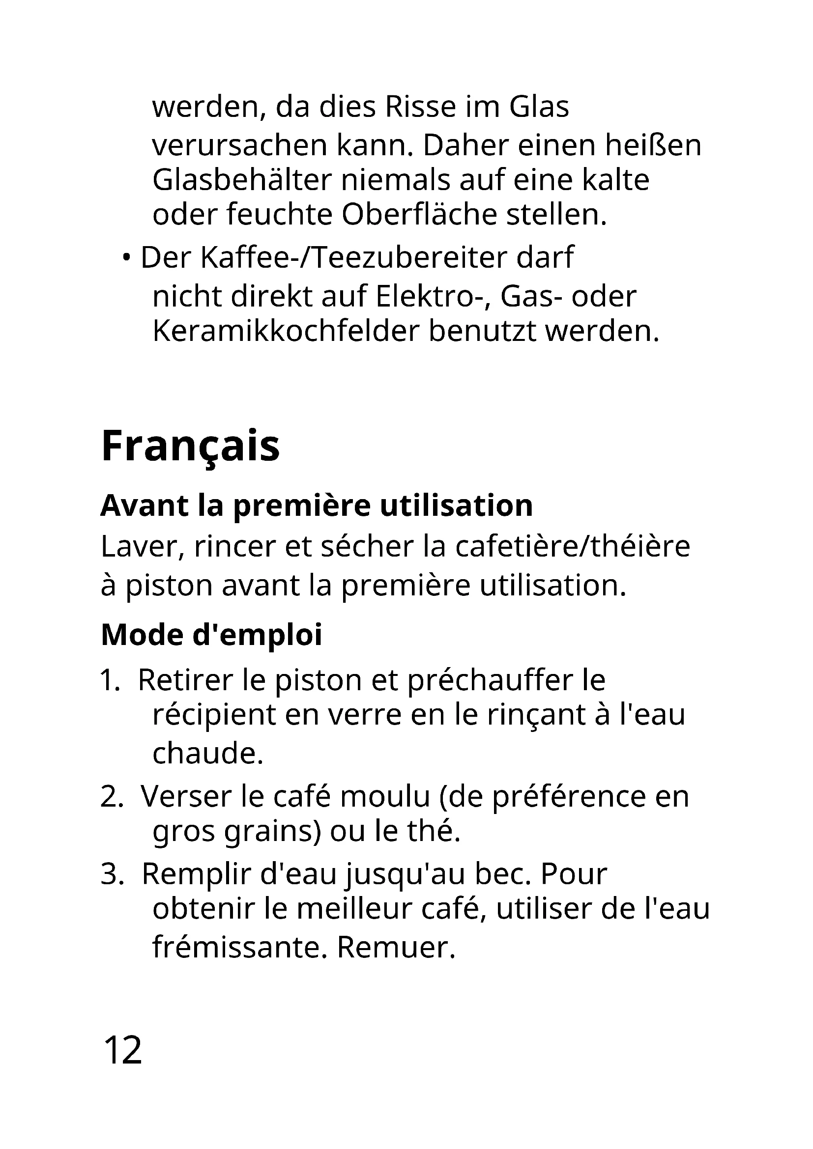 - La cafetière/théière ne doit pas être utilisée sur une plaque électrique, un foyer à gaz ou une plaque vitrocéramique.15 Nederlands Voorheteerstegebruik Was, spoel en droog de koe-/theemaker voor het eerste gebruik af. Zogebruikjedekoe-/theemaker