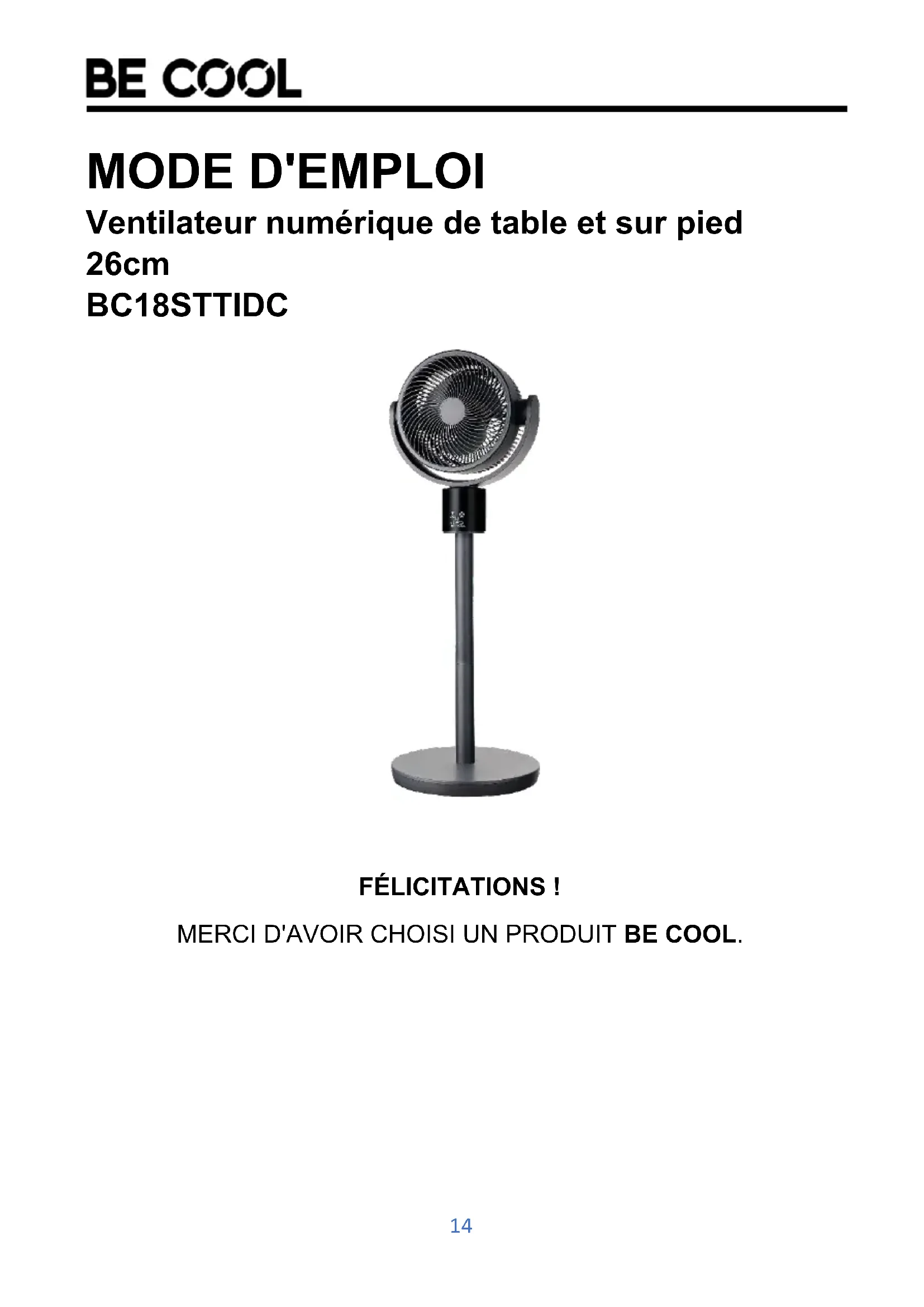 BC18STTIDC - Ventilateur Be Cool - Notice d'utilisation et mode d'emploi gratuit