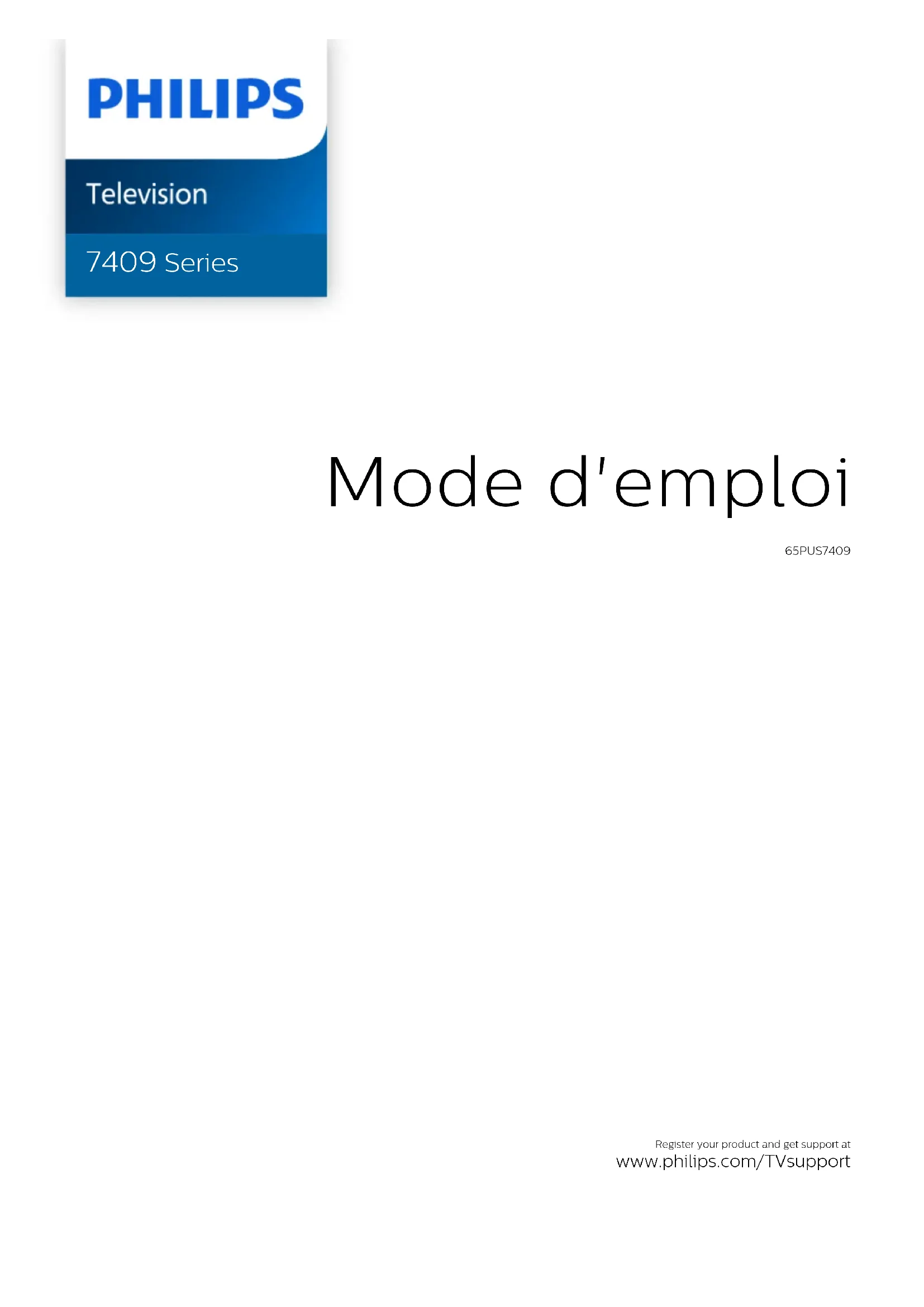 Retrouvez gratuitement la notice de l'appareil 65PUS7409 PHILIPS au format PDF.
