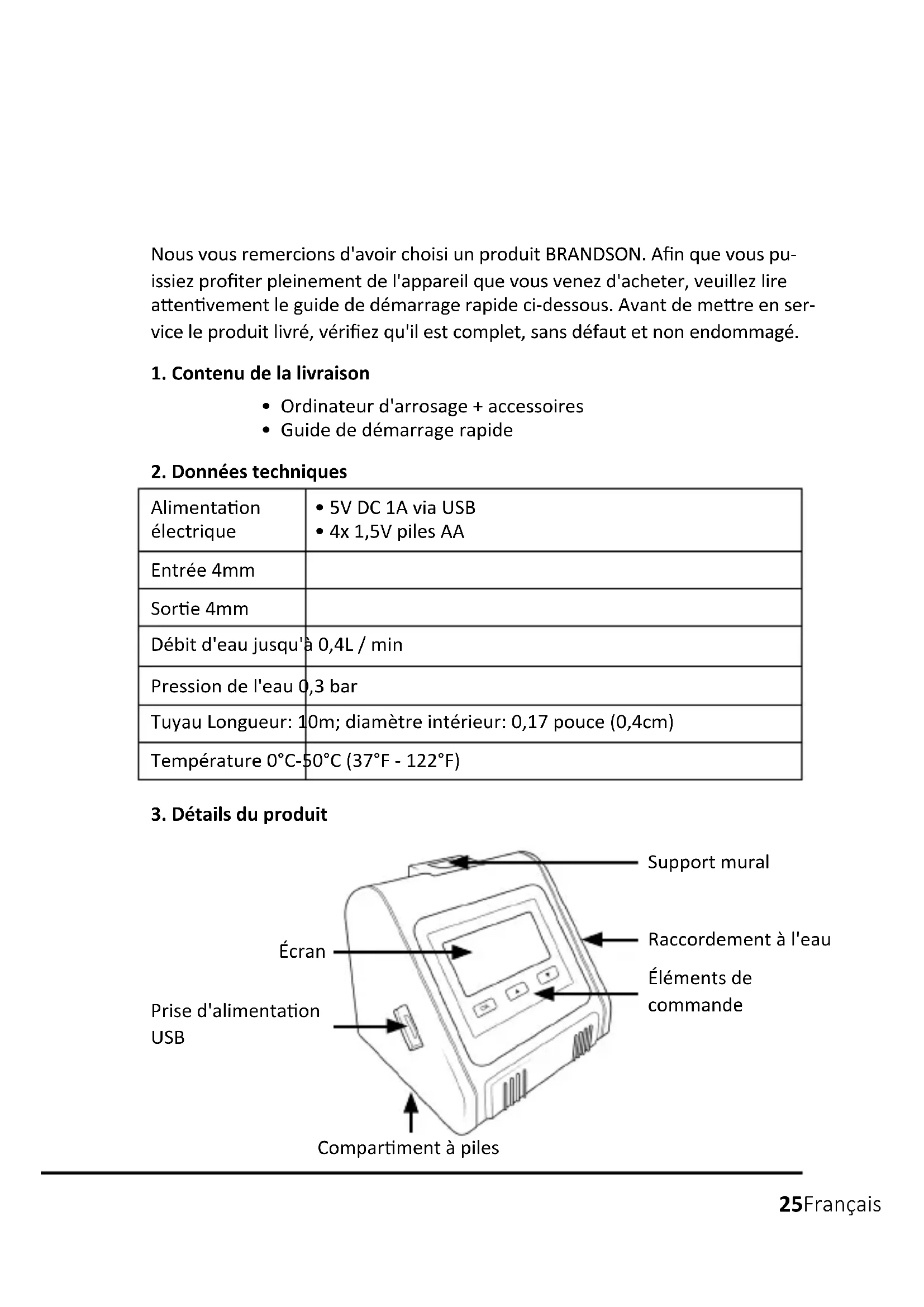 306810 - Programmateur d'arrosage Brandson - Notice d'utilisation et mode d'emploi gratuit