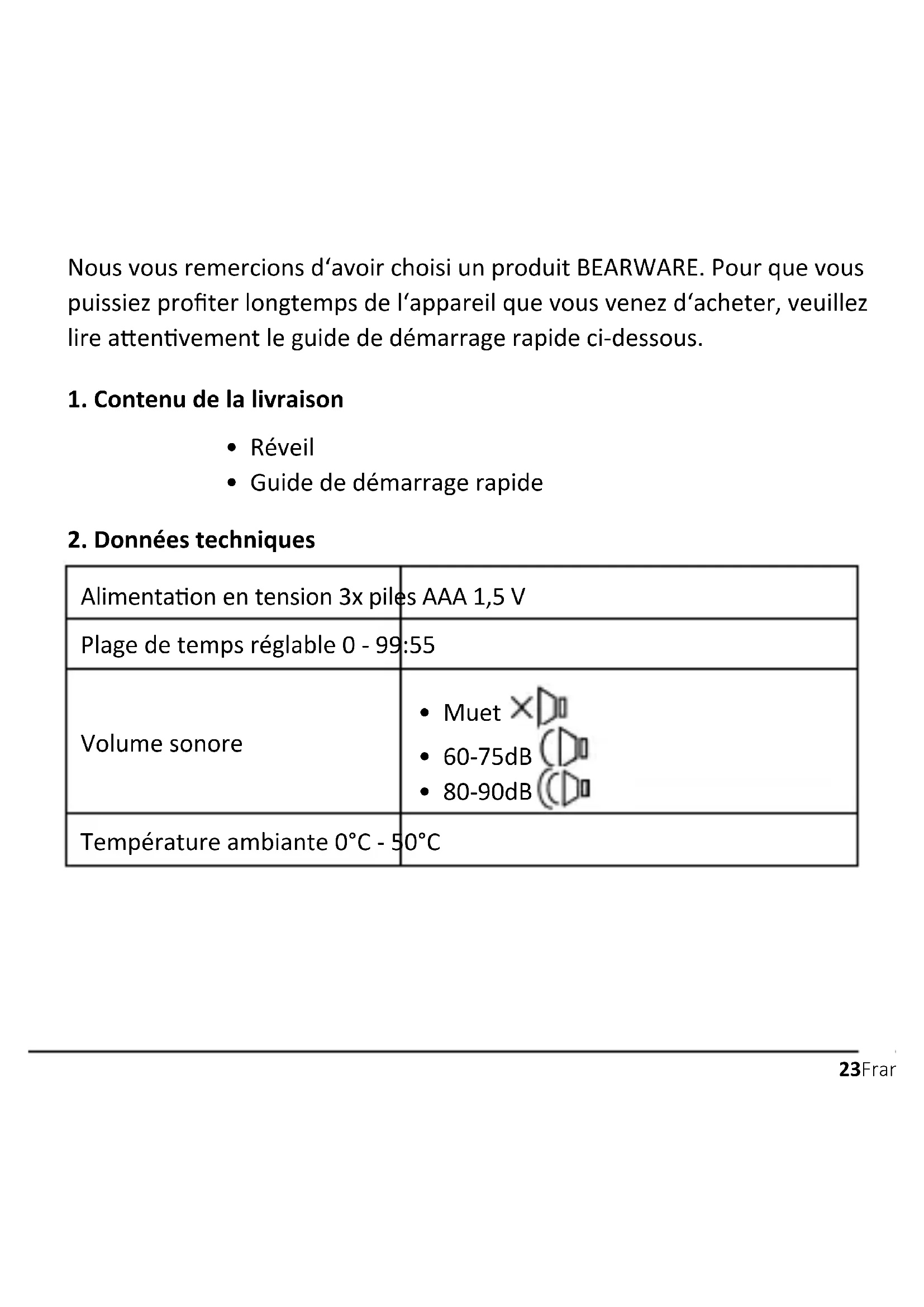 Téléchargez la notice de votre Minuteur au format PDF gratuitement ! Retrouvez votre notice 306870 - Bearware et reprennez votre appareil électronique en main. Sur cette page sont publiés tous les documents nécessaires à l'utilisation de votre appareil 306870 de la marque Bearware.