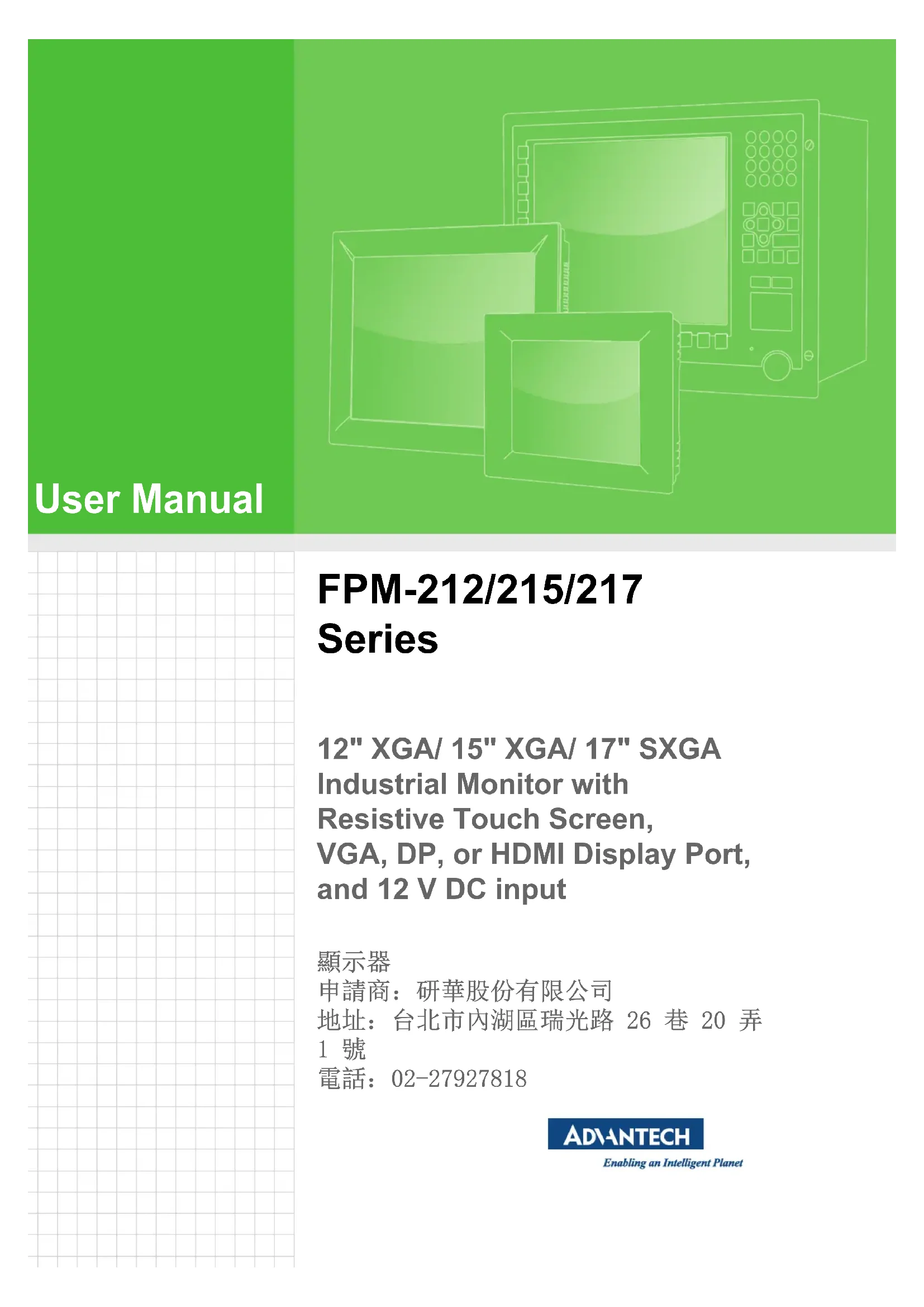 FPM212R8AE - Moniteur Advantech - Notice d'utilisation et mode d'emploi gratuit