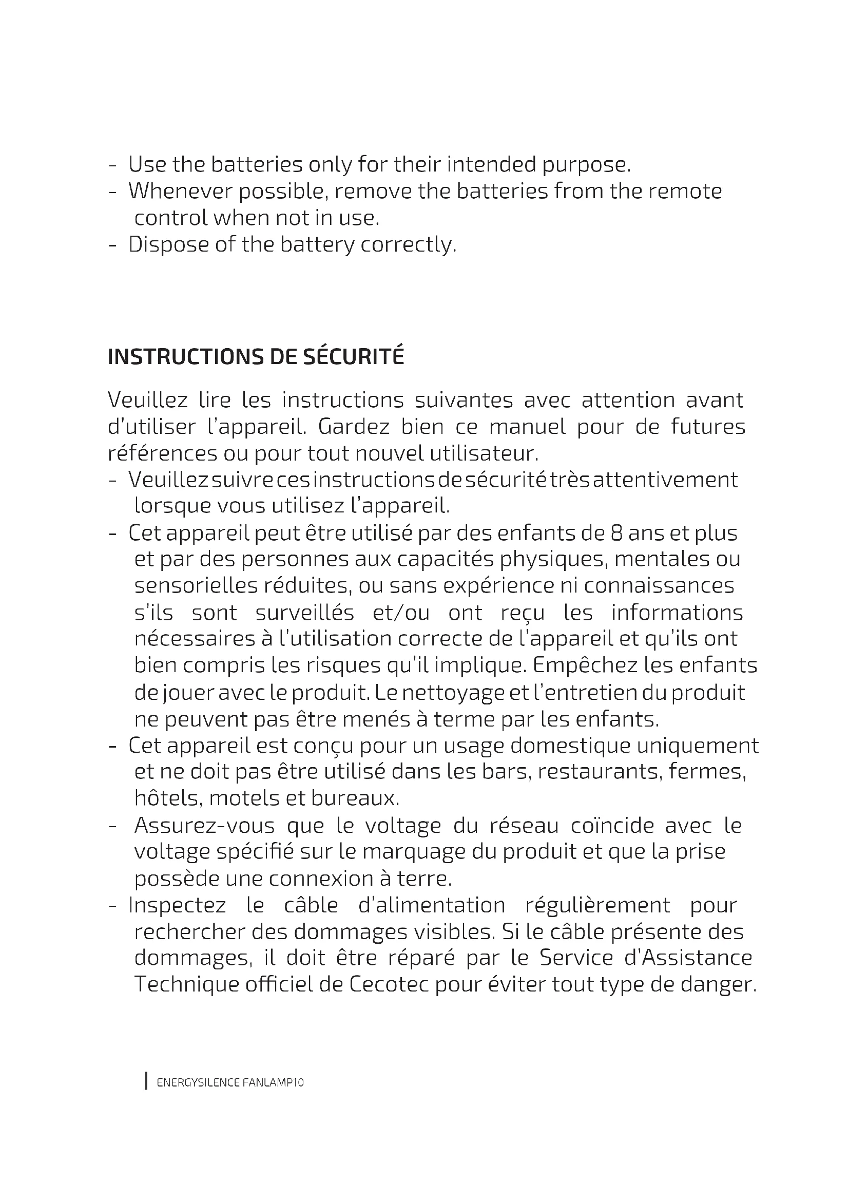 MODE D'EMPLOI EnergySilence FanLamp CECOTEC