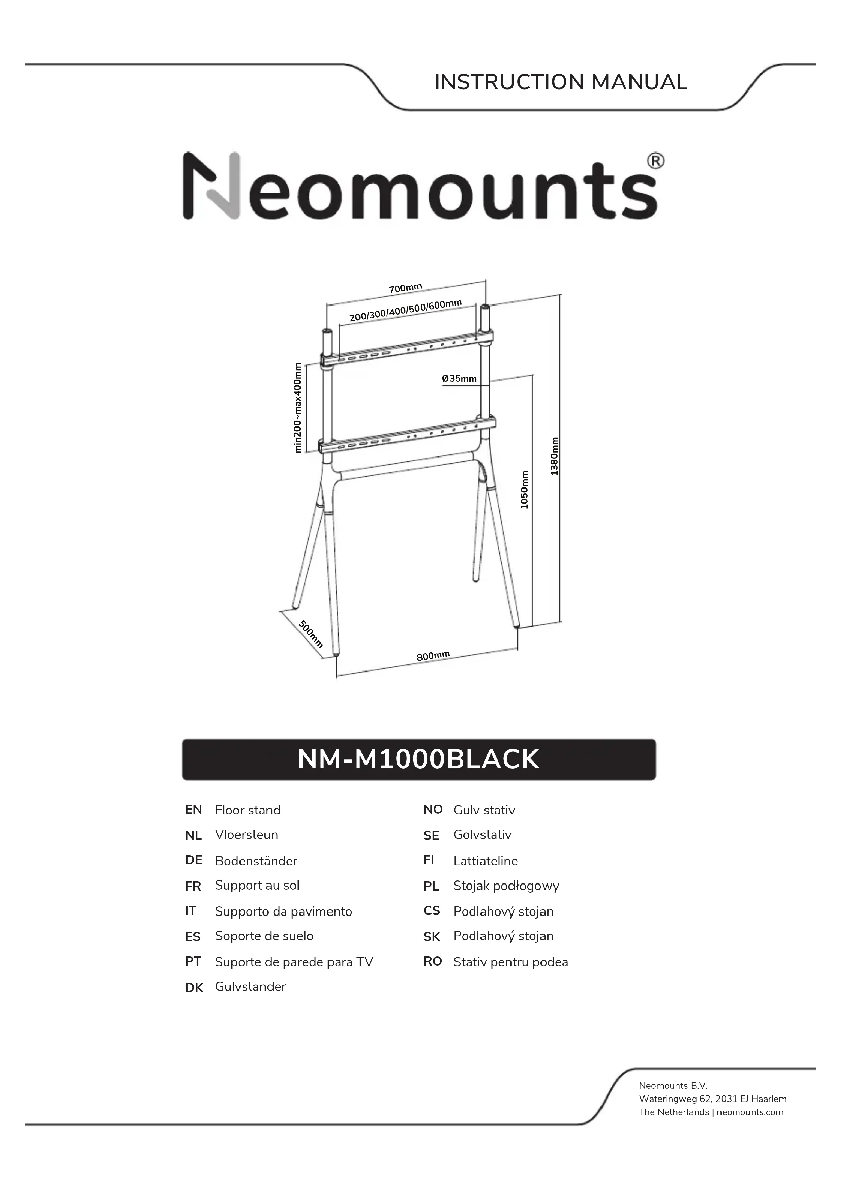 Retrouvez gratuitement la notice de l'appareil NMM1000BLACK NeoMounts au format PDF.
