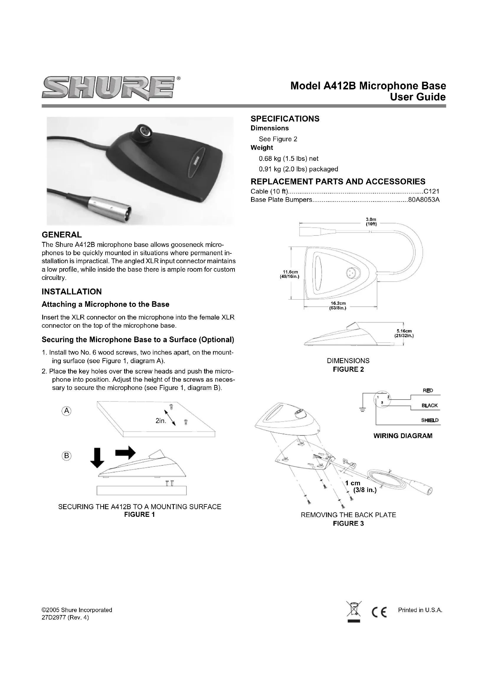 A412B - Non catégorisé SHURE - Notice d'utilisation et mode d'emploi gratuit