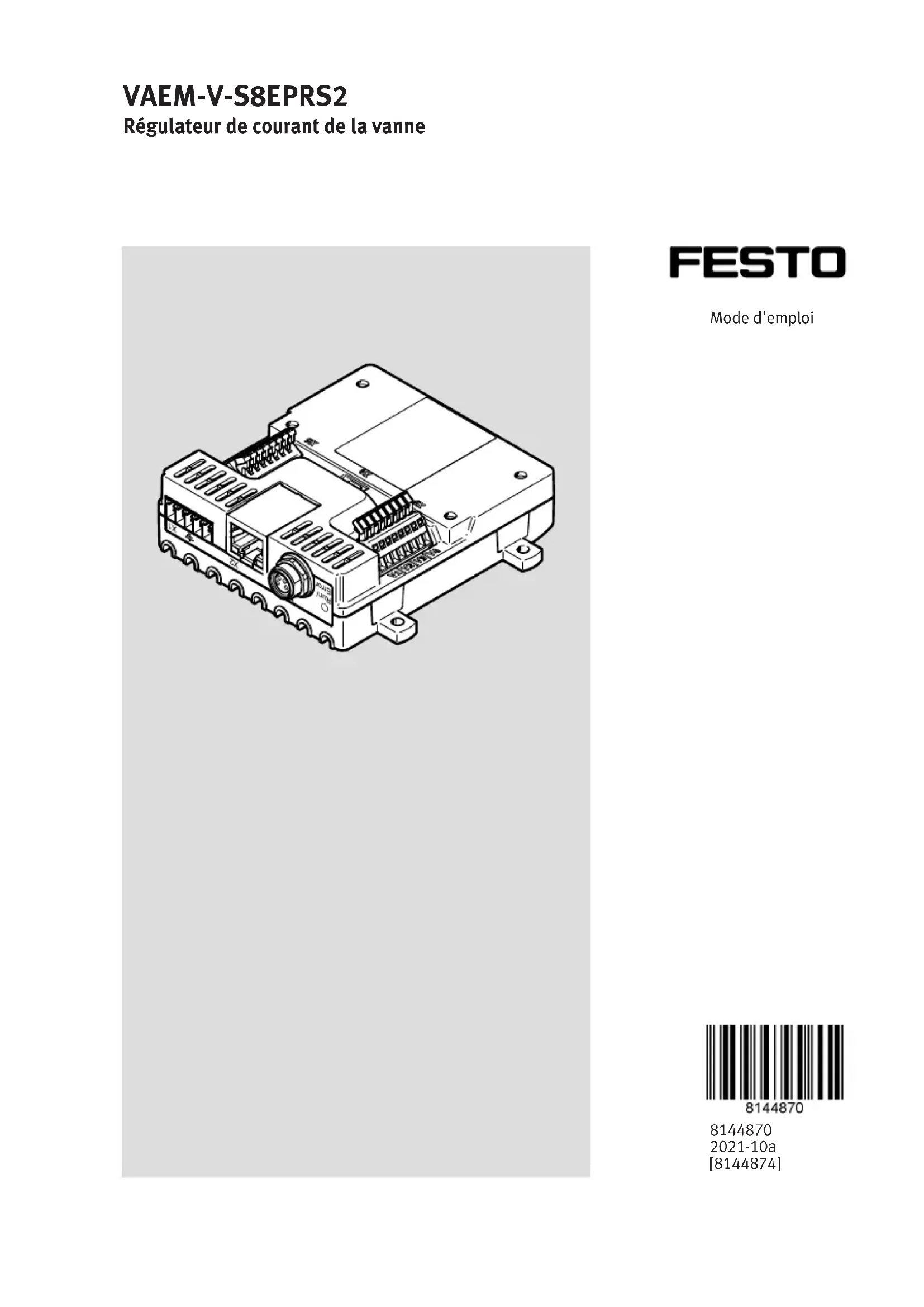 VAEMVS8EPRS2 - Régulateur électrique Festo - Notice d'utilisation et mode d'emploi gratuit
