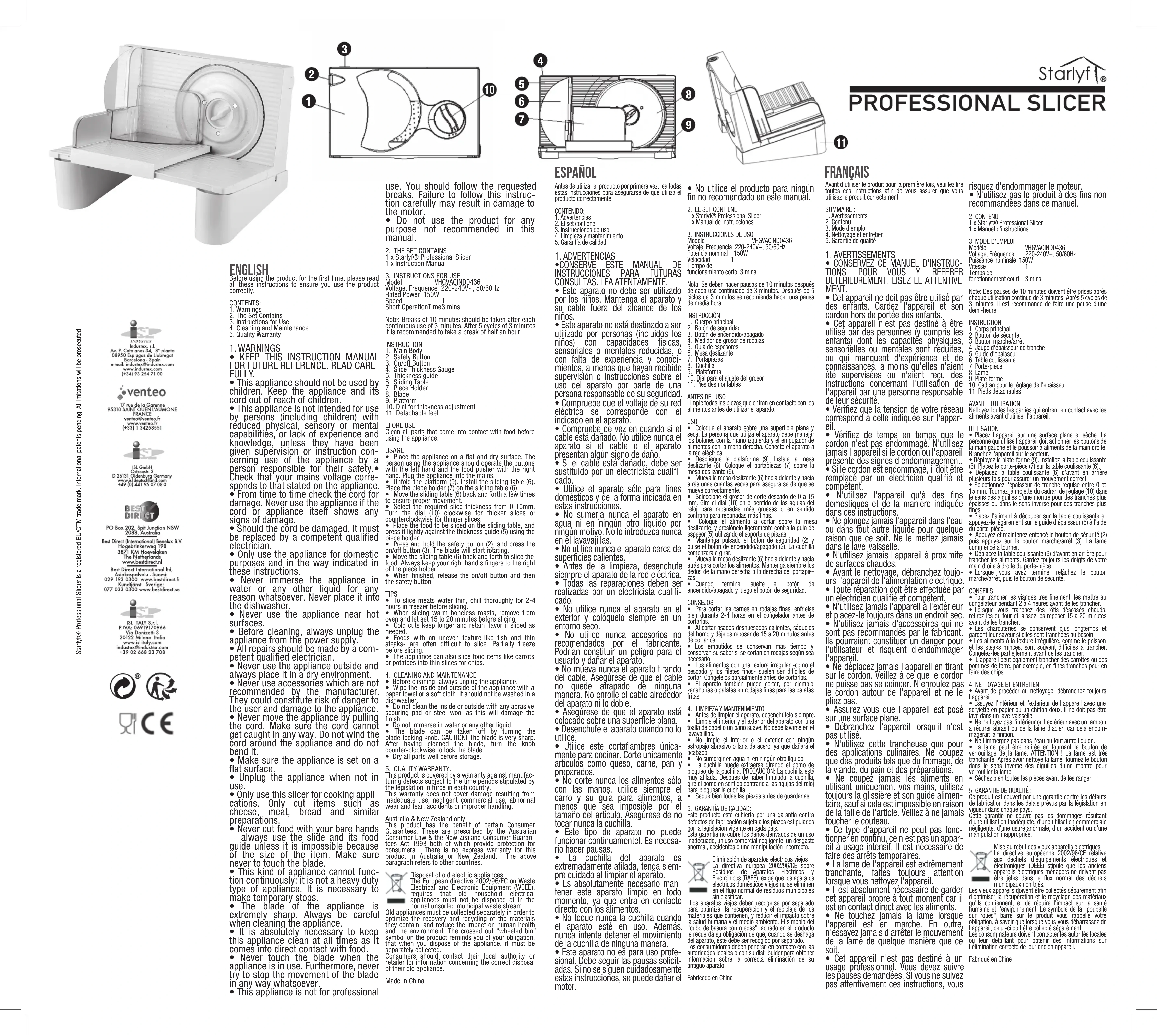 MODE D'EMPLOI Professional Slicer Starlyf