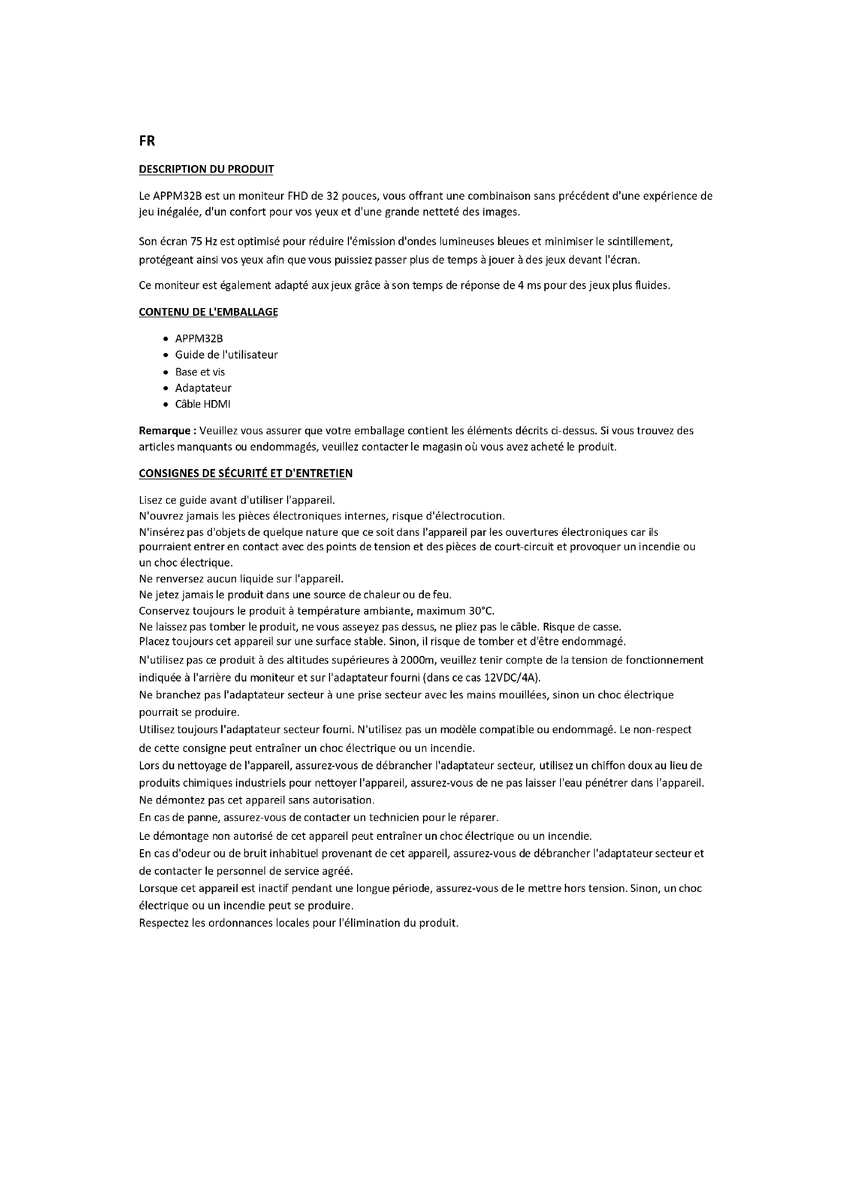 APPM32B - Moniteur Approx - Notice d'utilisation et mode d'emploi gratuit