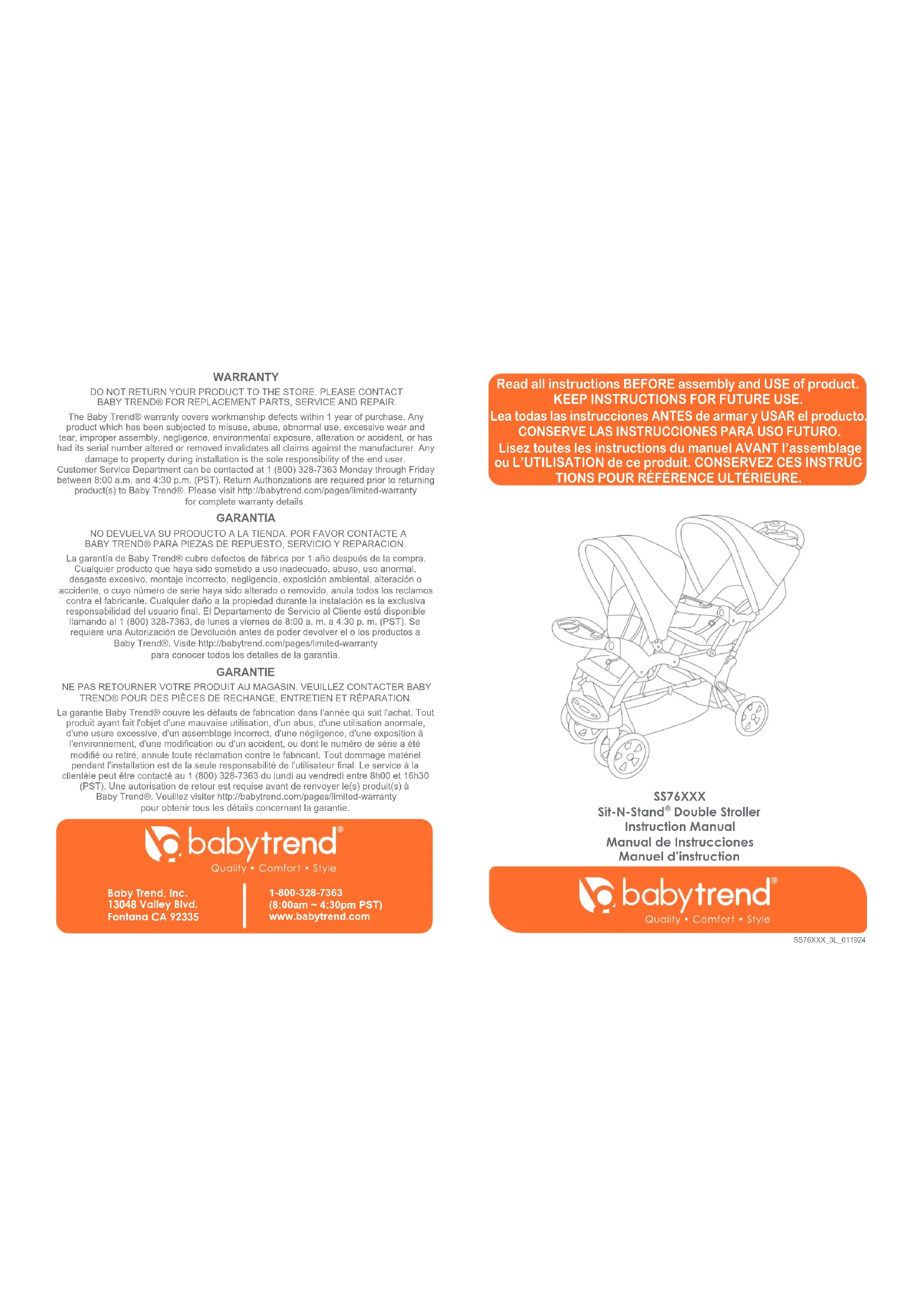 Sit N' Stand Double - Poussette Baby Trend - Notice d'utilisation et mode d'emploi gratuit