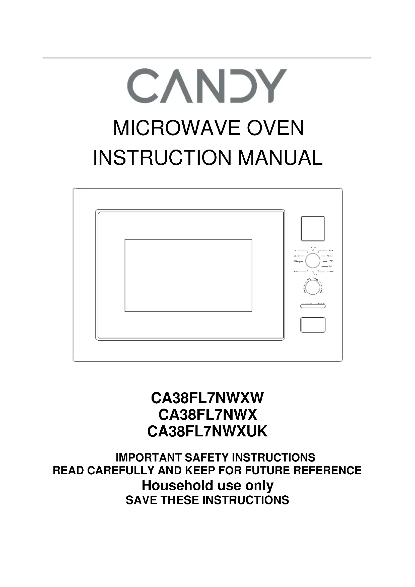 CA38FL7NWX - Four à micro-ondes CANDY - Notice d'utilisation et mode d'emploi gratuit