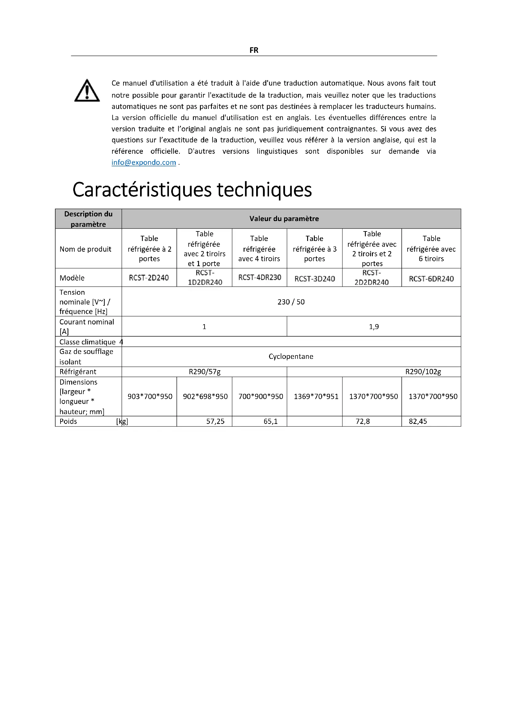 RCST6DR240 - Réfrigérateur Royal Catering - Notice d'utilisation et mode d'emploi gratuit