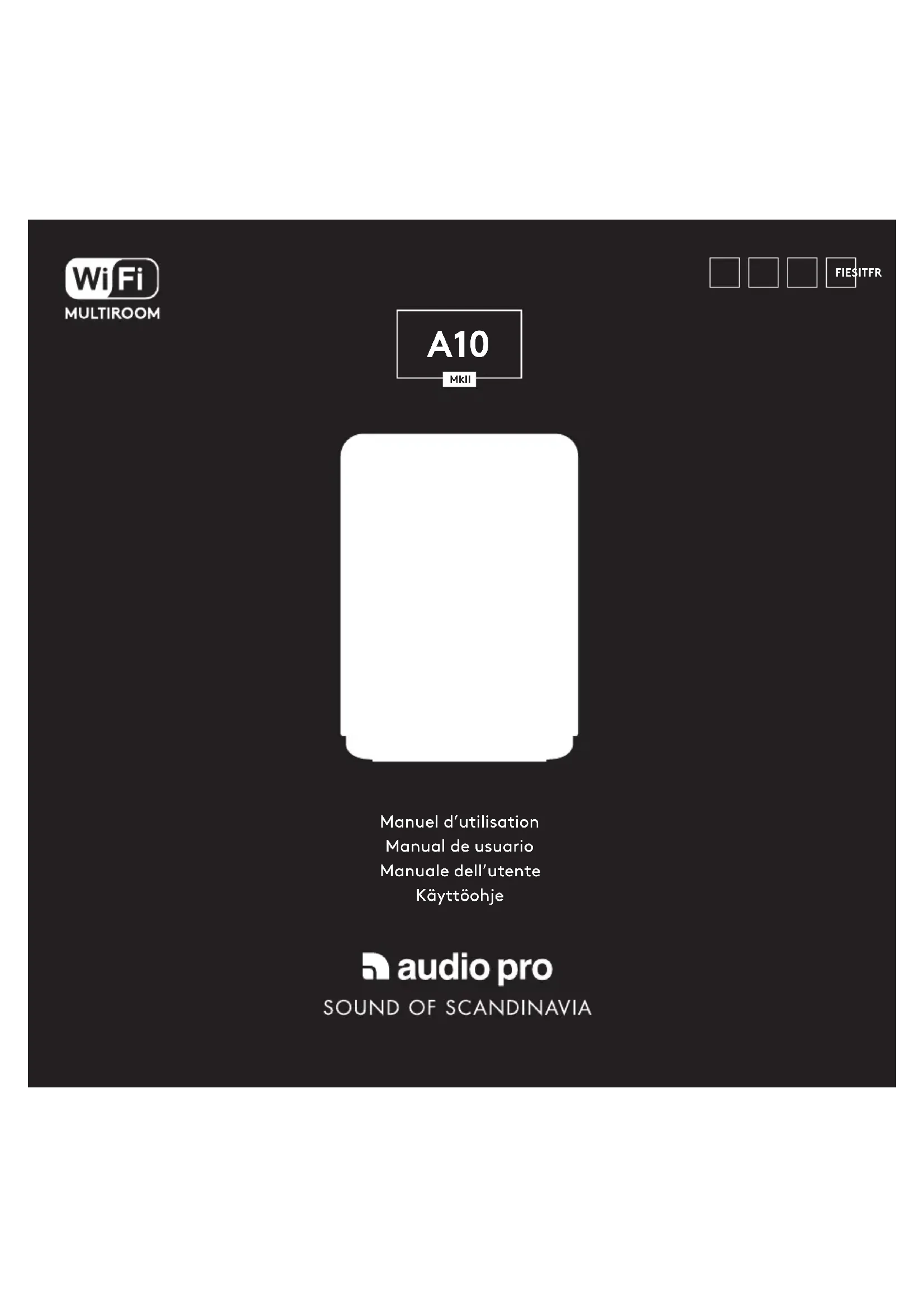 LECTURE DEPUIS DES APPAREILS CONNECTÉS | REPRODUCCIÓN DESDE DISPOSITIVOS CONECTADOS | RIPRODUZIONE DA DISPOSITIVI CONNESSI | SOITTO LIITETYISTÄ LAITTEISTA Branchez un câble Conecta por medio de un cable Eseguire la connessione con un cavo Yhdistä johdollaFR: CARACTÉRISTIQUES Type: Enceinte amplifiée avec deux radiateurs basse fréquence Amplificateur: Amplificateur numérique de Classe D, 52 W Tweeter: 1 x 1.25" BMR Woofer: Base de 1 x 3" long throw Radiateurs basse fréquence: 2 x 4.5" Plage de fréquences: 55–20.000 Hz Fréquence de coupure: 300 Hz Dimensions HxLxP: 193 x 140 x 140 mm Entrées: WiFi, Bluetooth 5.0, 3.5 mm Compatibilité réseau sans fil: 802.11 b/g/n/ac, 2.4 GHz/5 GHz Formats audio pris en charge: MP3, WMA, AAC, FLAC, Apple Lossless Batterie 7,4 V/5 Ah/37 Wh Consommation d’énergie STBY/ON: 1.8 W/3 W (veille activée après >20 minutes d’inactivité) Écrou d'insertion du support mural: M6