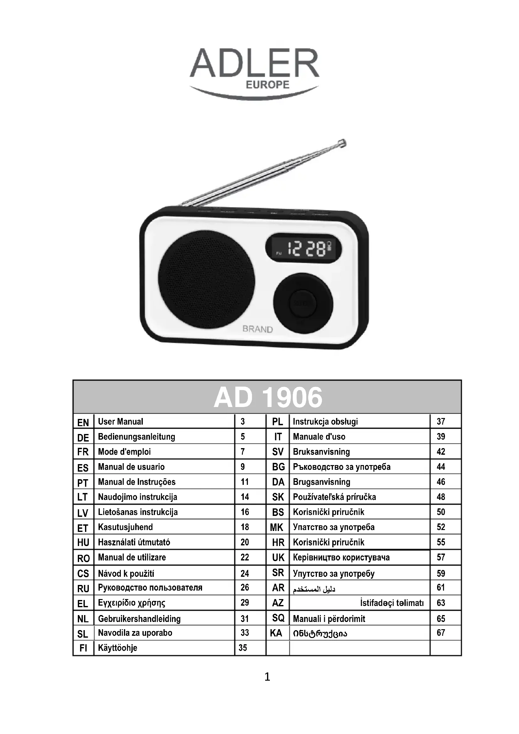 Retrouvez gratuitement la notice de l'appareil AD 1906 ADLER au format PDF.