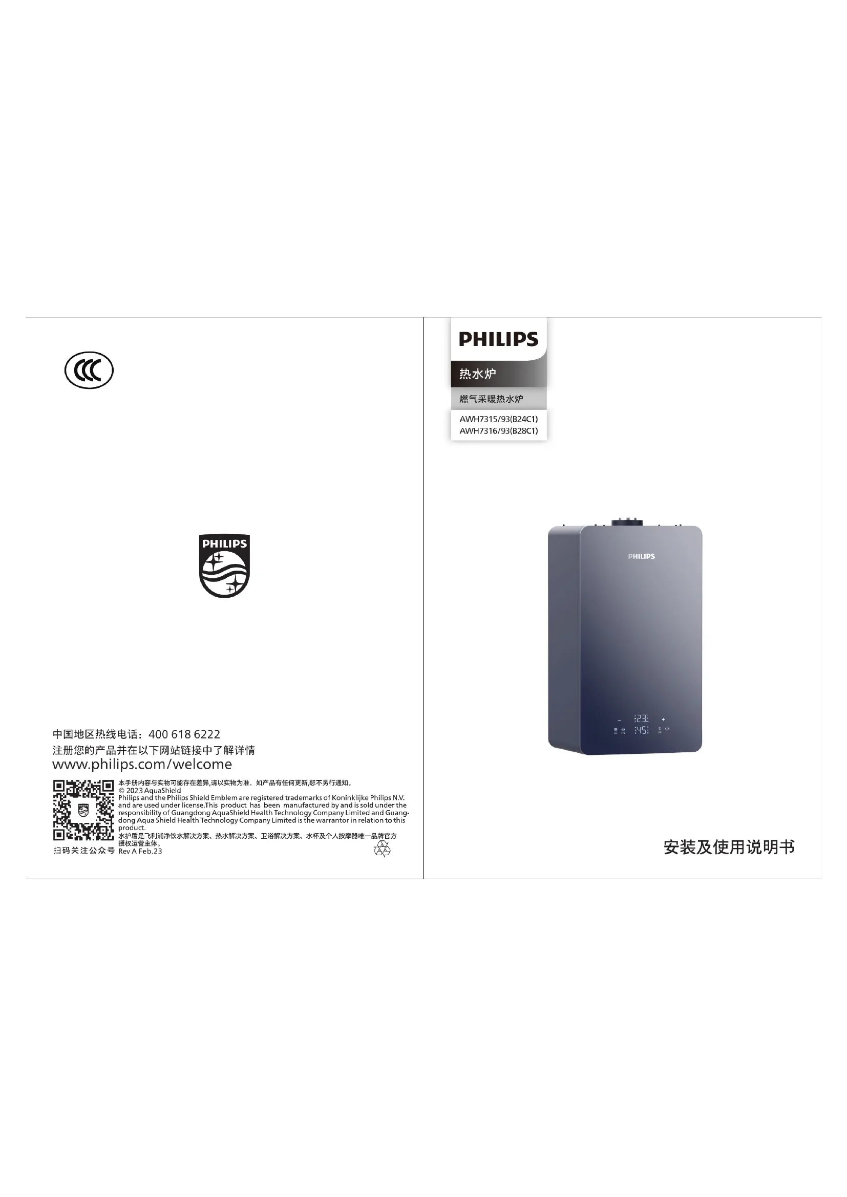 AquaShield AWH7316 - Chaudière PHILIPS - Notice d'utilisation et mode d'emploi gratuit