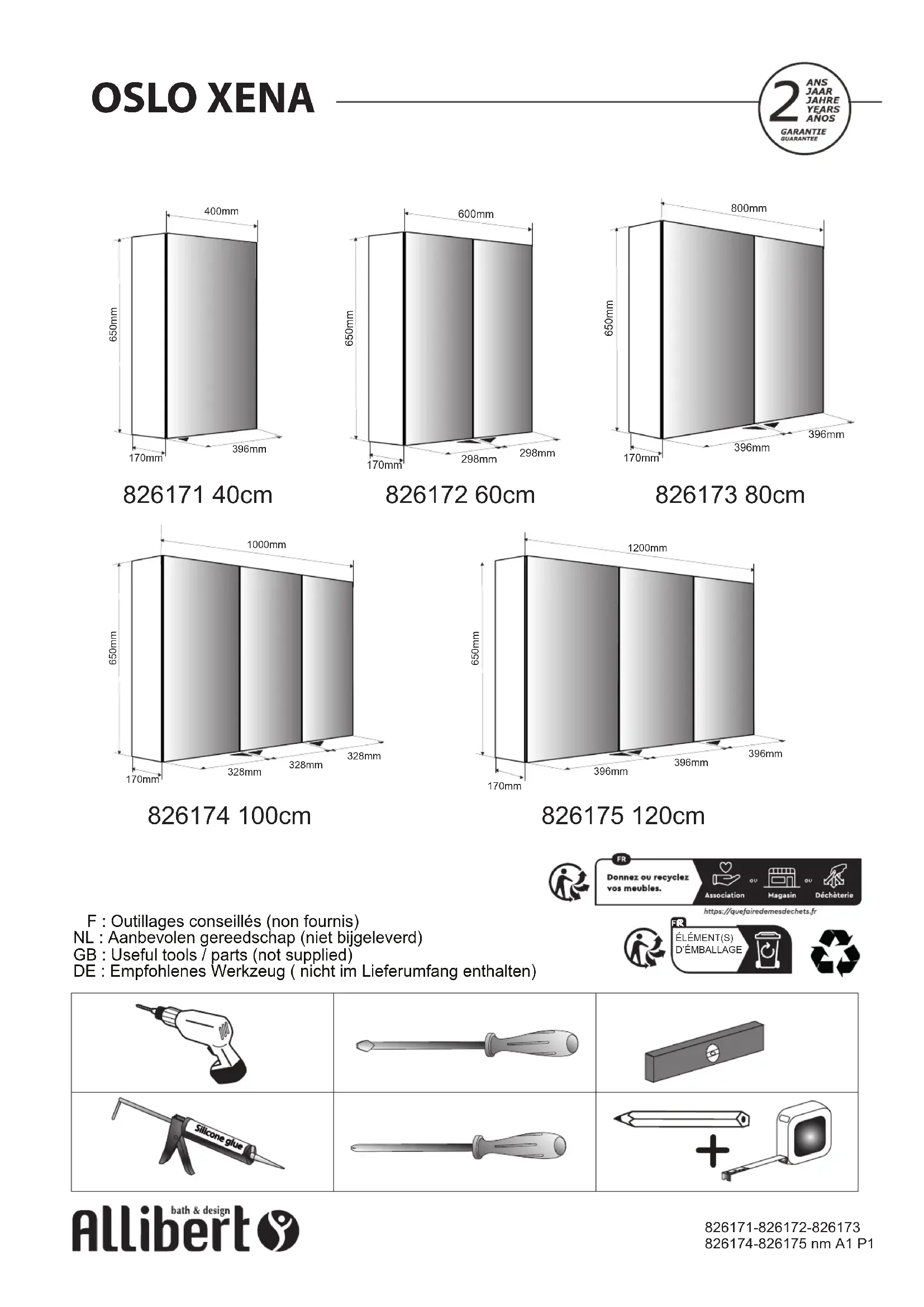 Oslo 826175 - Armoire miroir Allibert - Notice d'utilisation et mode d'emploi gratuit