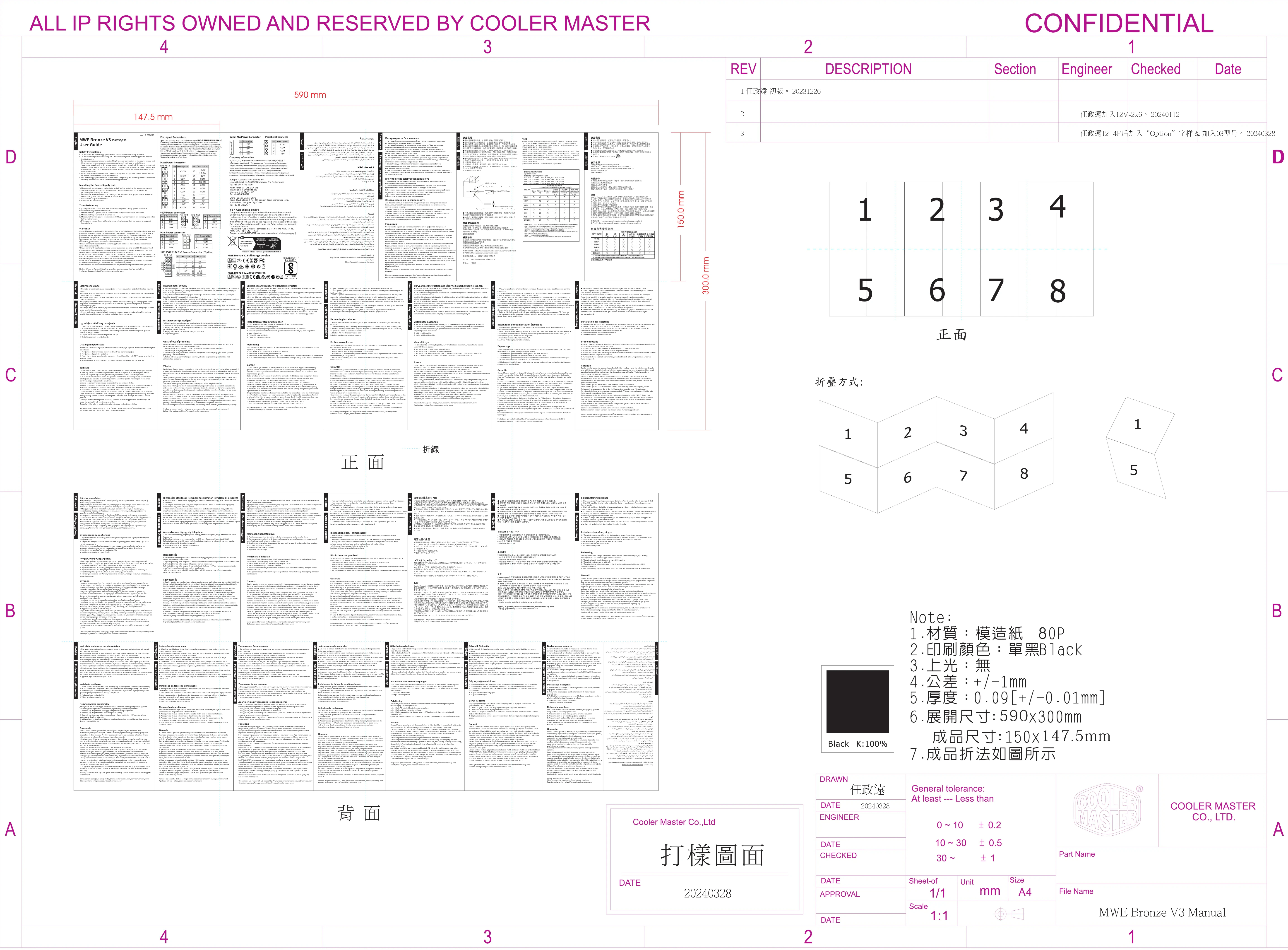 Retrouvez gratuitement la notice de l'appareil MWE 750 Bronze V3 COOLER MASTER au format PDF.