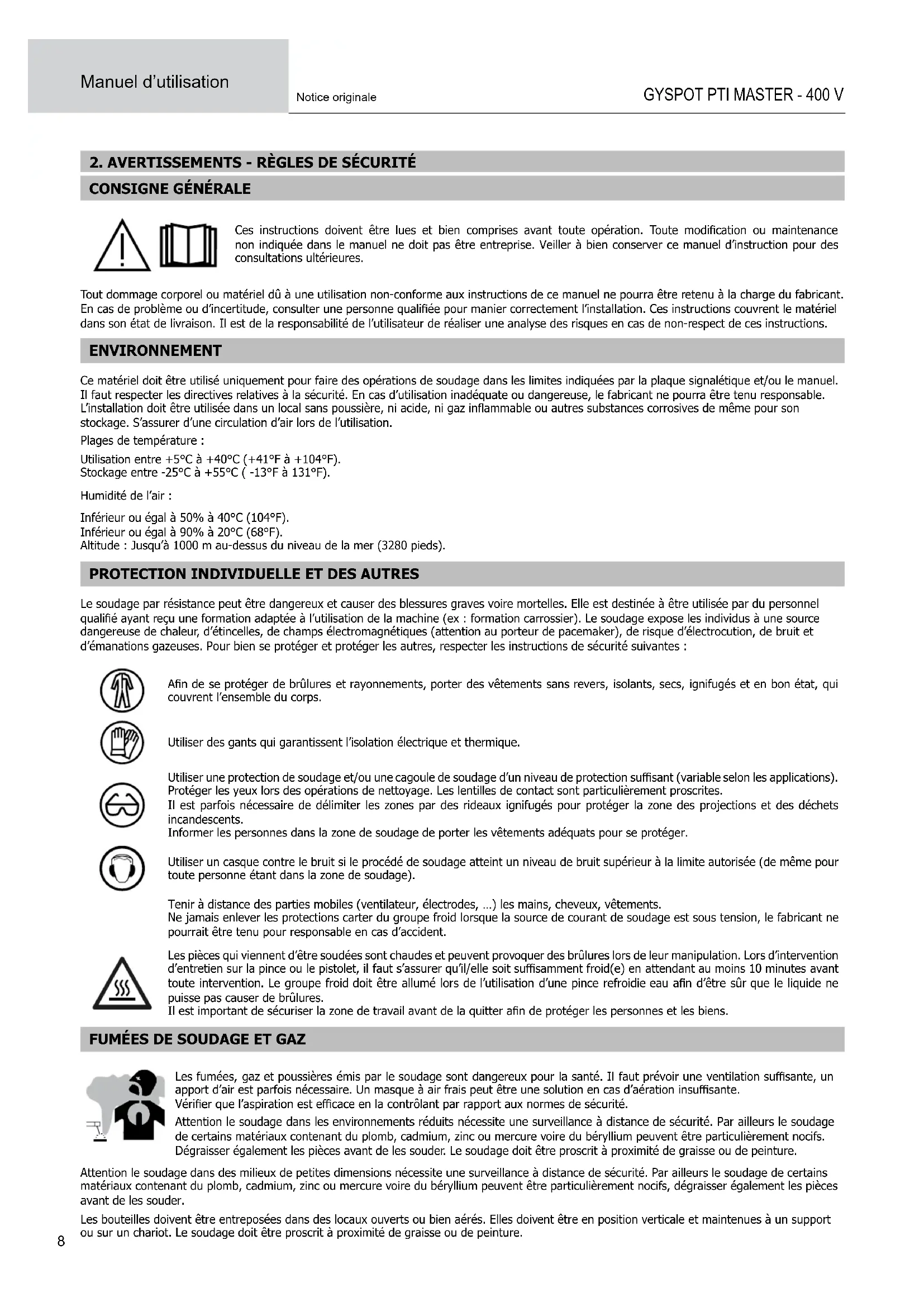 MODE D'EMPLOI Gyspot PTI Master 400V GYS