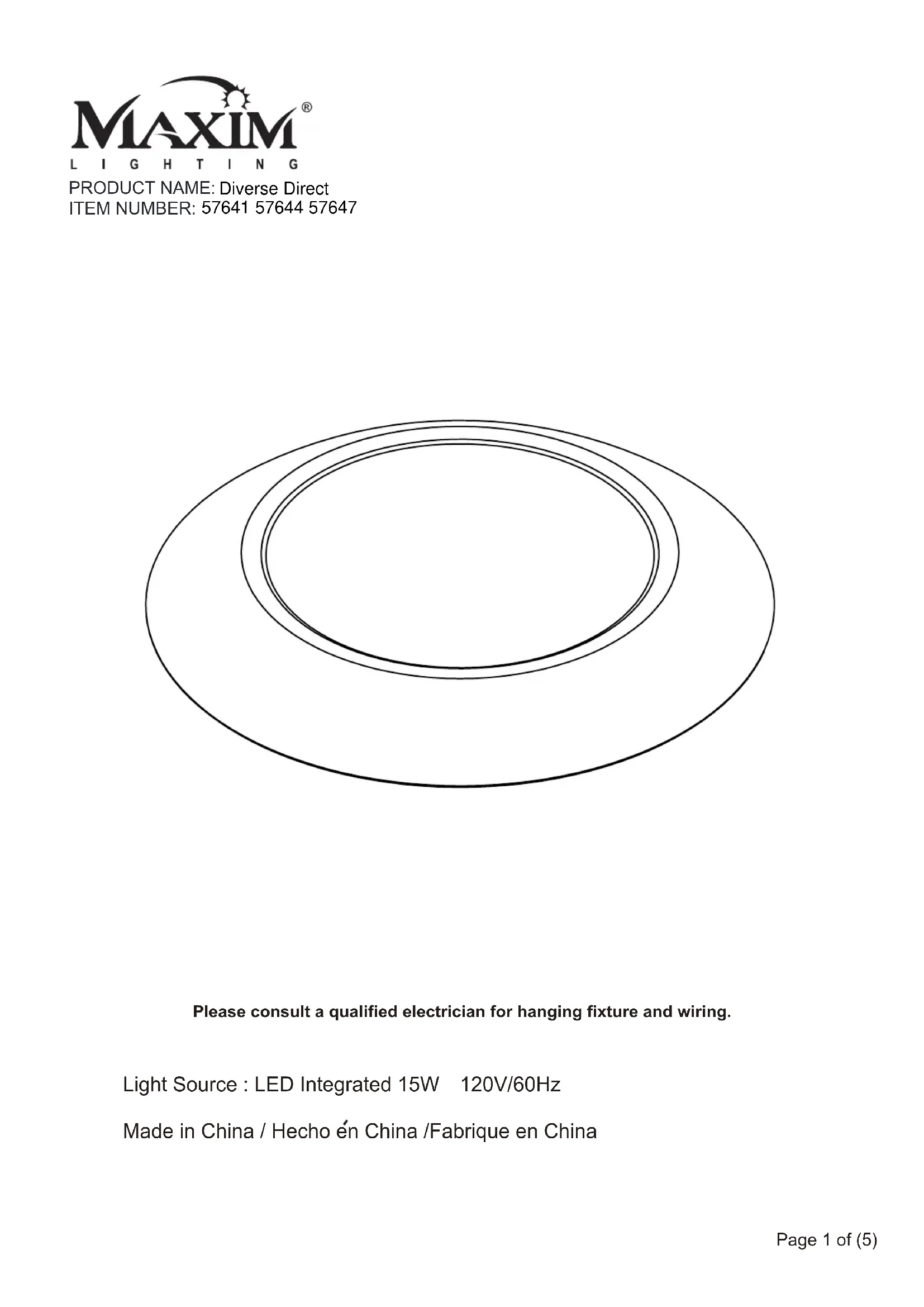 Diverse 57641WTWT - Éclairage Maxim - Notice d'utilisation et mode d'emploi gratuit