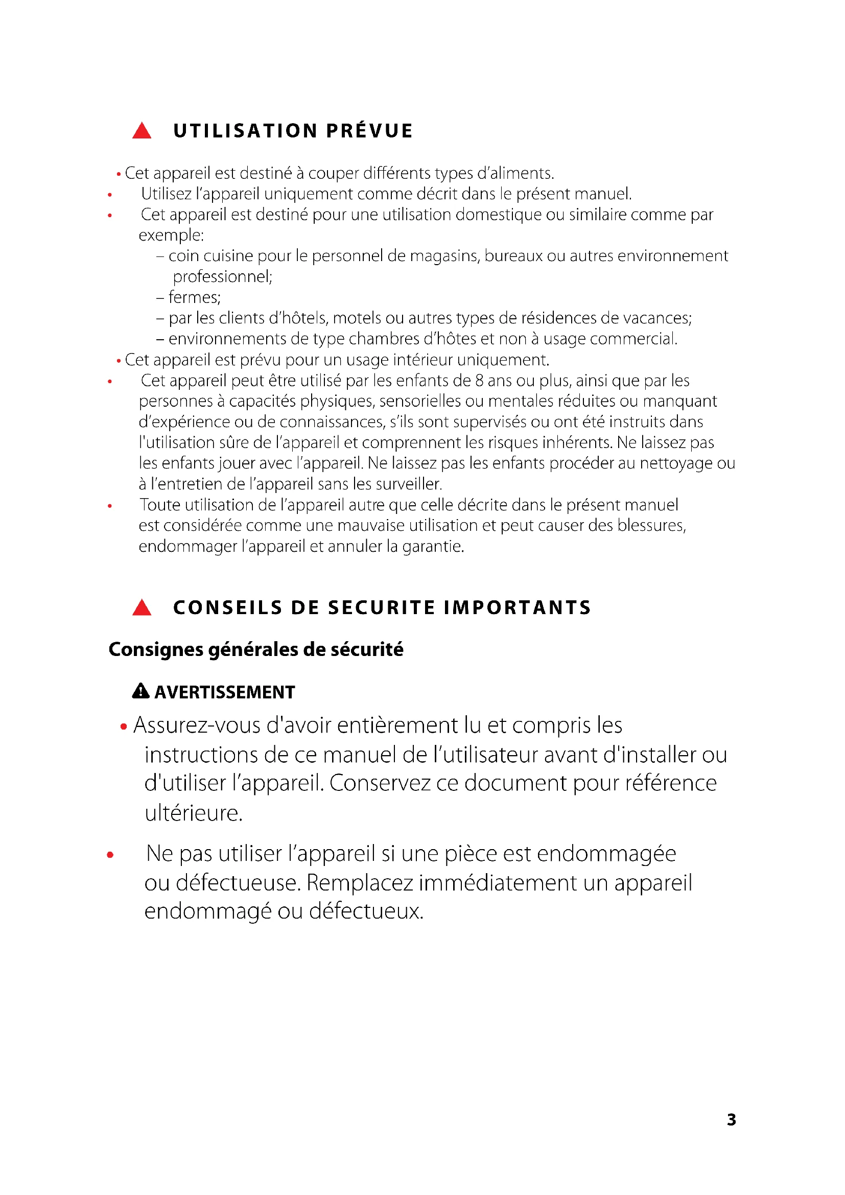 - Utilisez l’appareil uniquement comme décrit dans le présent manuel.