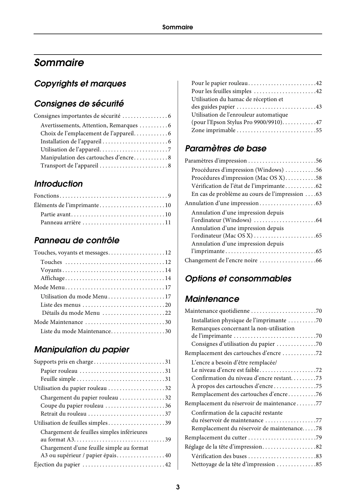 - Sommaire Sommaire Copyrights et marques Pour le papier rouleau p. 42