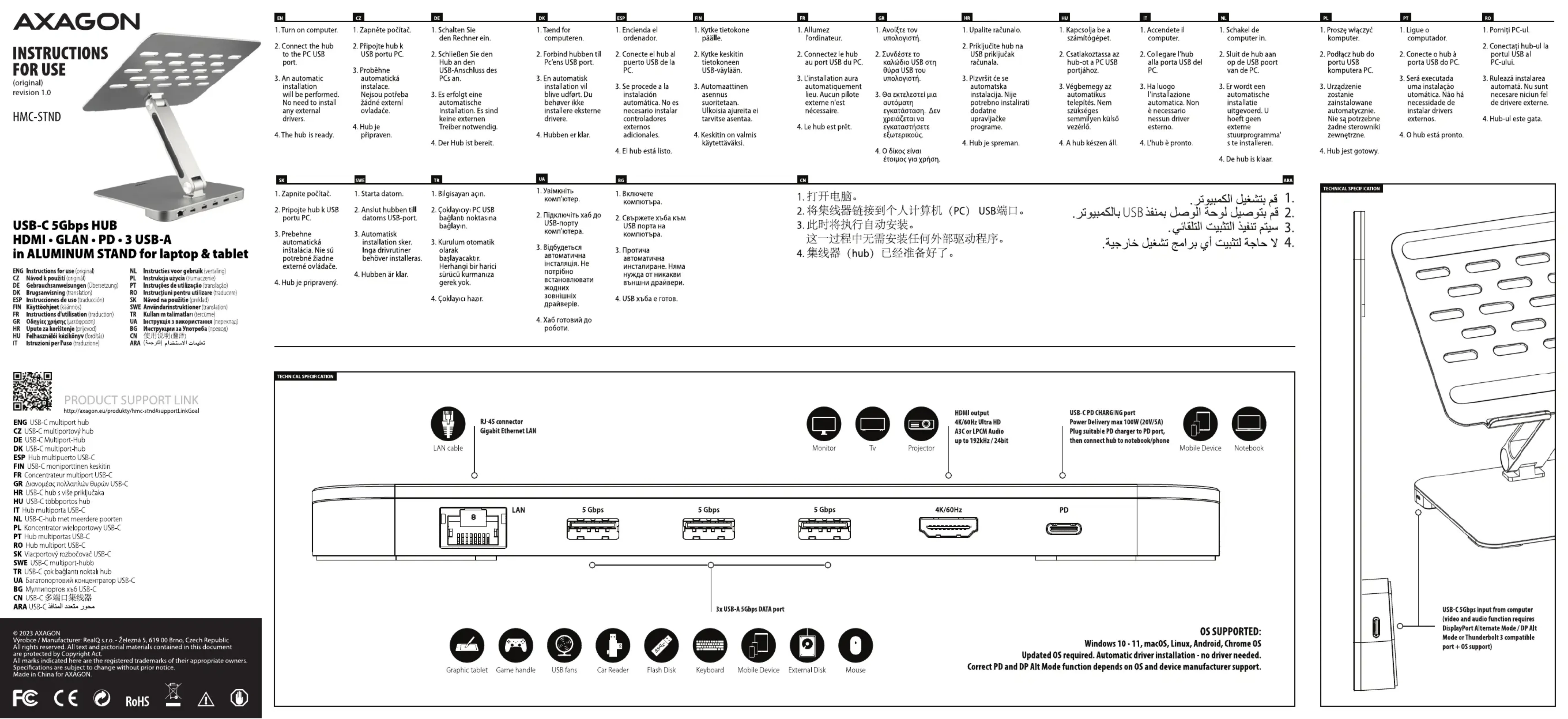 HMCSTND - Accessoire informatique Axagon - Notice d'utilisation et mode d'emploi gratuit