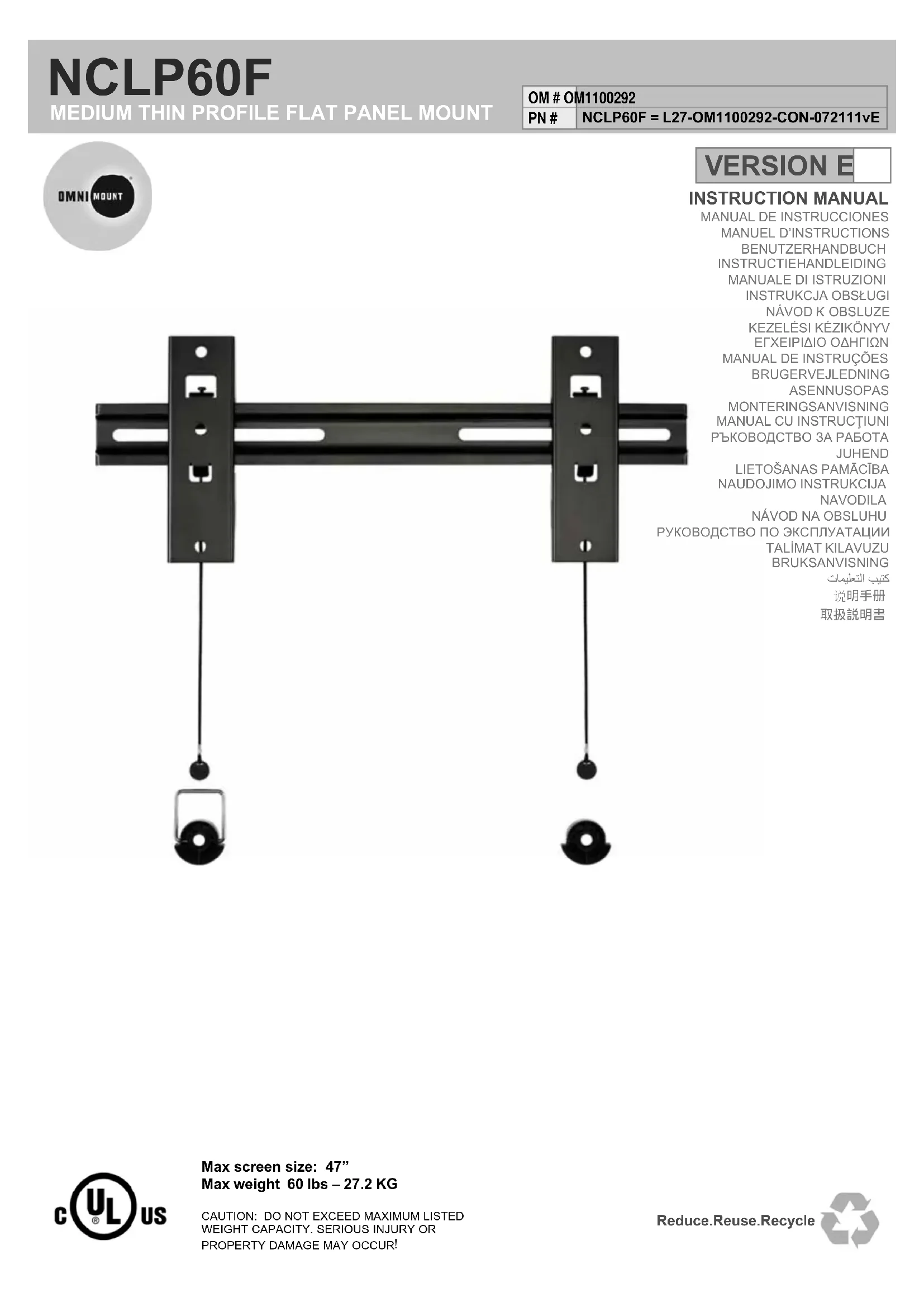 Retrouvez gratuitement la notice de l'appareil NCLP60F OmniMount au format PDF.